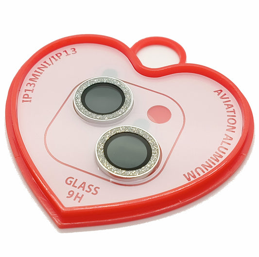 Kameraschutz für iPhone 13 13 Mini 2er Set Glitzer Silber Glas