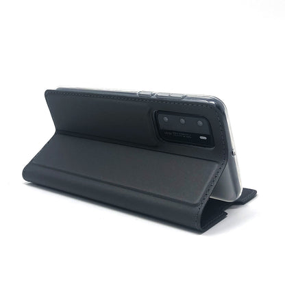 Für Huawei P40 Pro – Anthrazitschwarzes Slimline Low Profile Flip Case in PU-Lederoptik