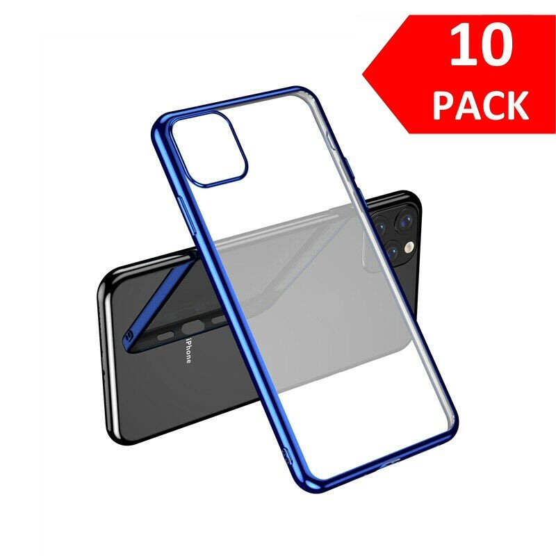 Hülle für iPhone 11 Pro Max Großpackung mit 10 x transparentem Silikon mit blauem Rand