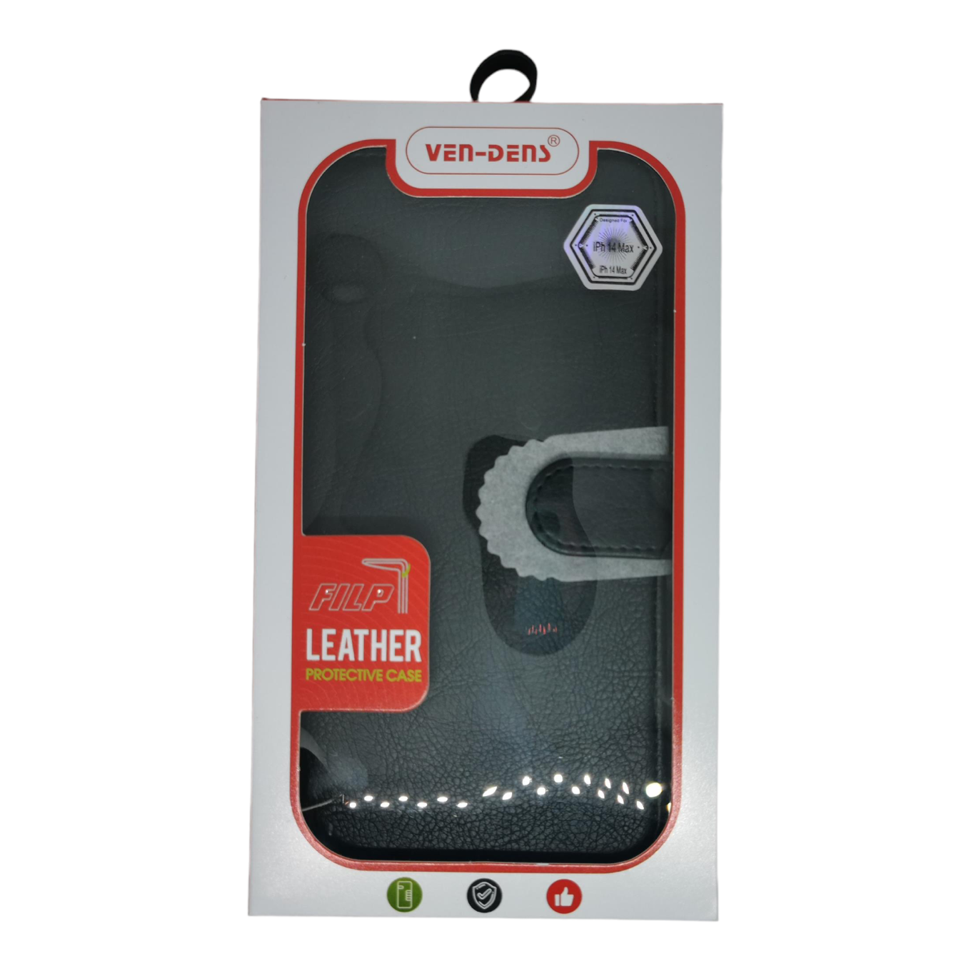 Hülle für iPhone 12 Pro Luxus PU Leder Flip Wallet Ven-Dens Schwarz