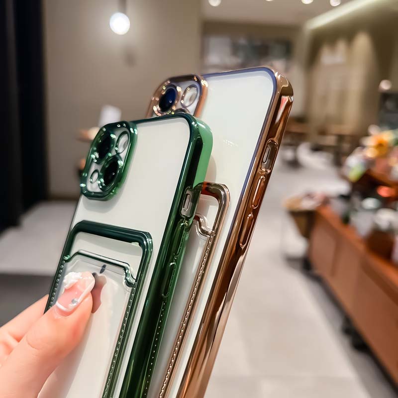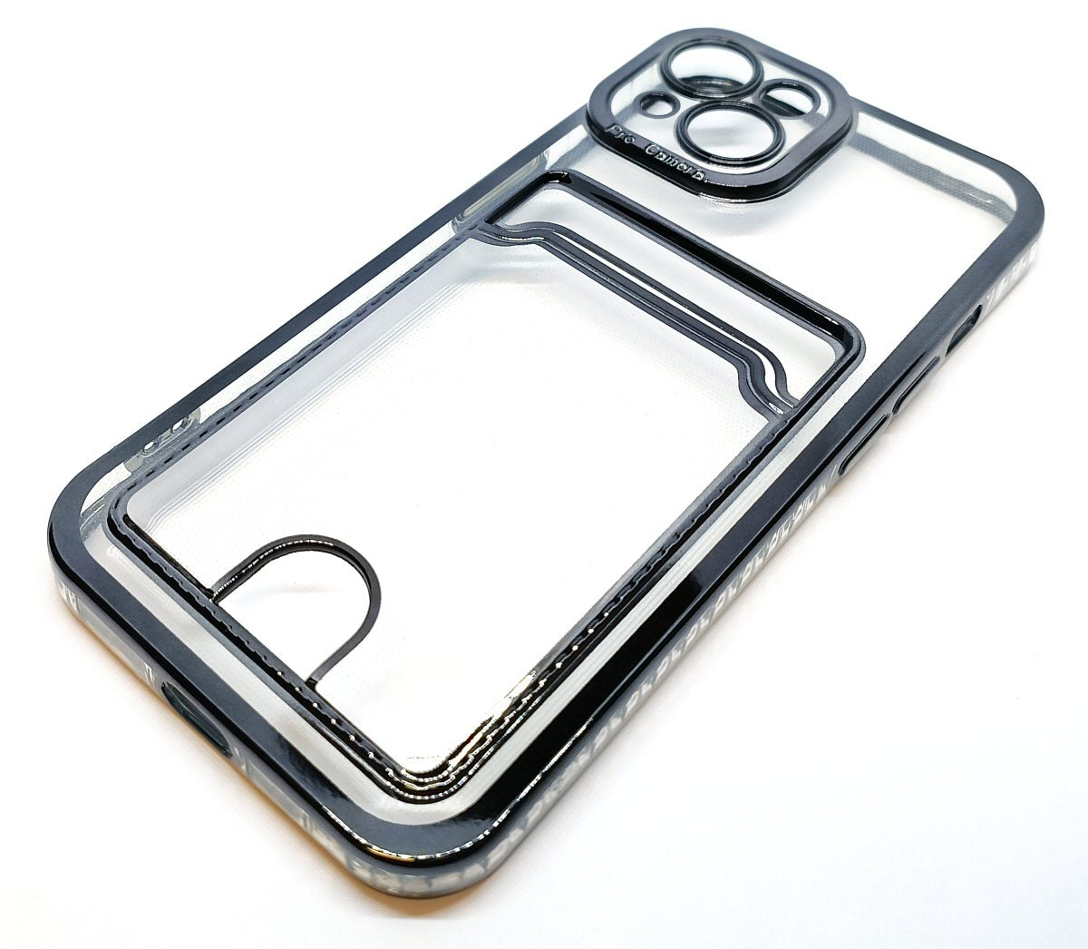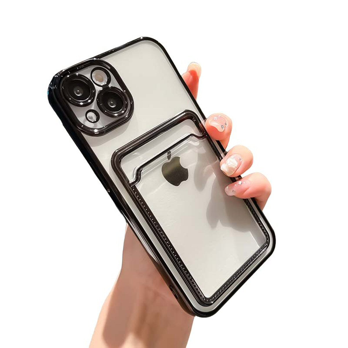 Hülle für iPhone 14 Plus 15 Plus Clear View Kartenhalter mit gestyltem Rand Schwarz