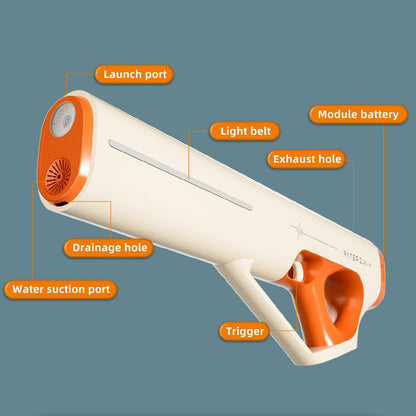 Das Besondere an der Dazzling Water Gun ist ihre leuchtende LED-Beleuchtung. Perfekt für Spiele am Abend oder als coolen visuellen Effekt am Tag: Die bunten Lichter blinken und leuchten beim Abfeuern und sorgen mit jedem Schuss für ein spektakuläres Schauspiel. Kinder werden begeistert sein, Erwachsene beeindruckt!