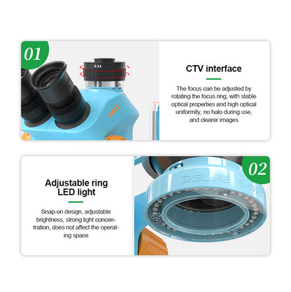 Dieses für Mikrolöten konzipierte Mikroskop bietet kristallklare Vergrößerung für detaillierte Arbeiten an Telefon-Hauptplatinen, PCB-Reparaturen und mehr. Seine fortschrittliche Optik und sein ergonomisches Design machen es zu einem unverzichtbaren Werkzeug für hochpräzise Aufgaben und bieten Ihnen die Zuverlässigkeit und Klarheit, die Sie für einwandfreie Reparaturen benötigen.