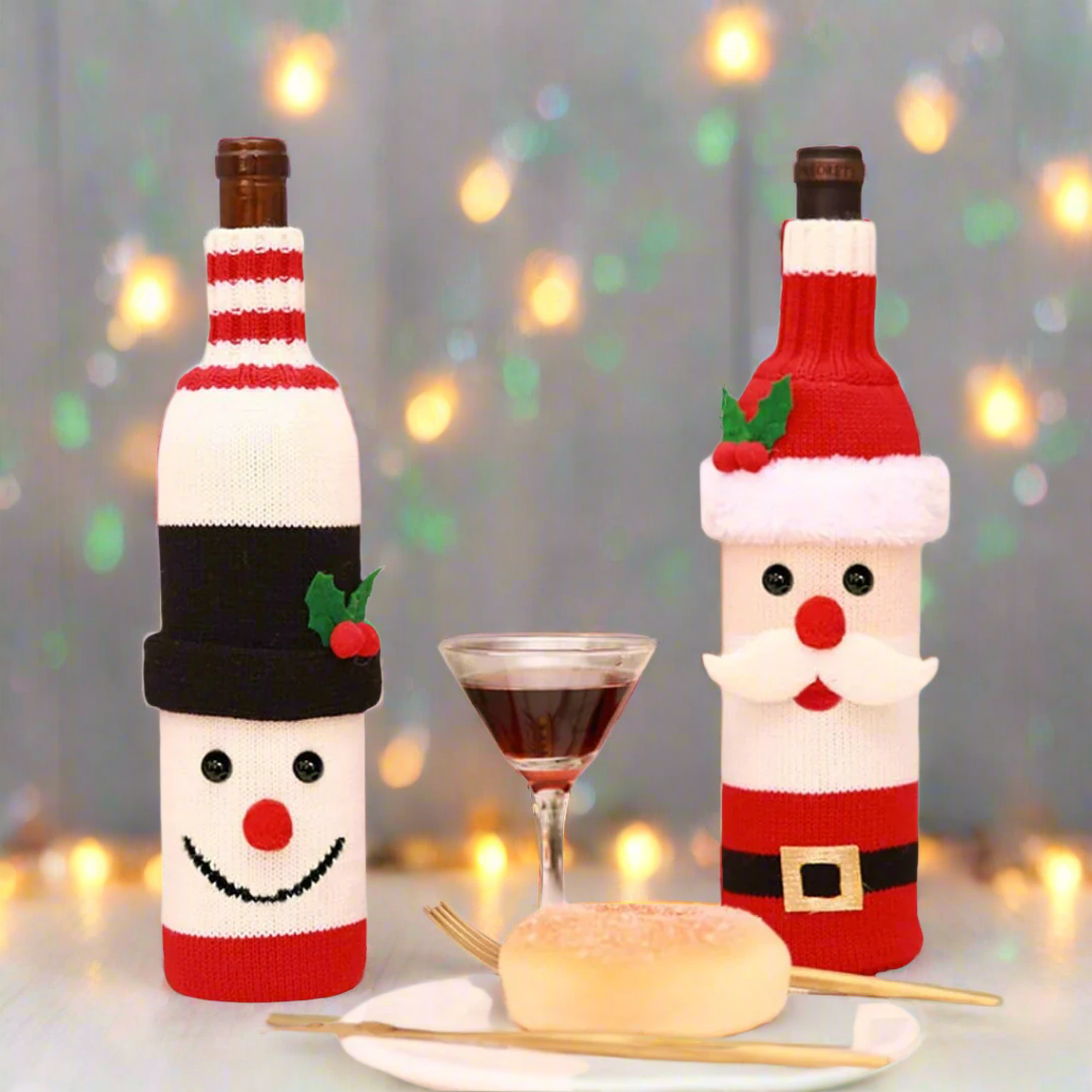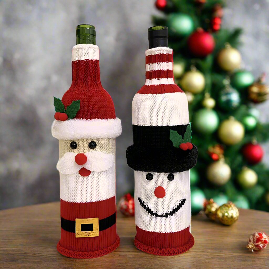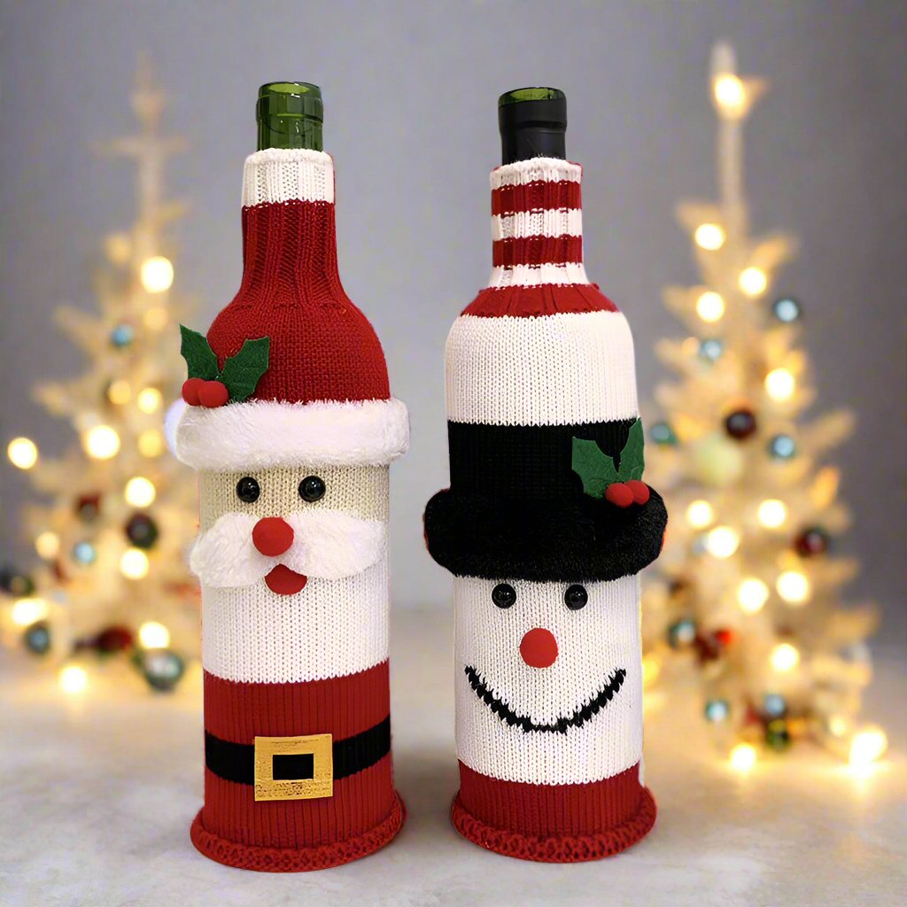 Festlicher Weihnachtsmann & Schneemann Flaschenüberzug