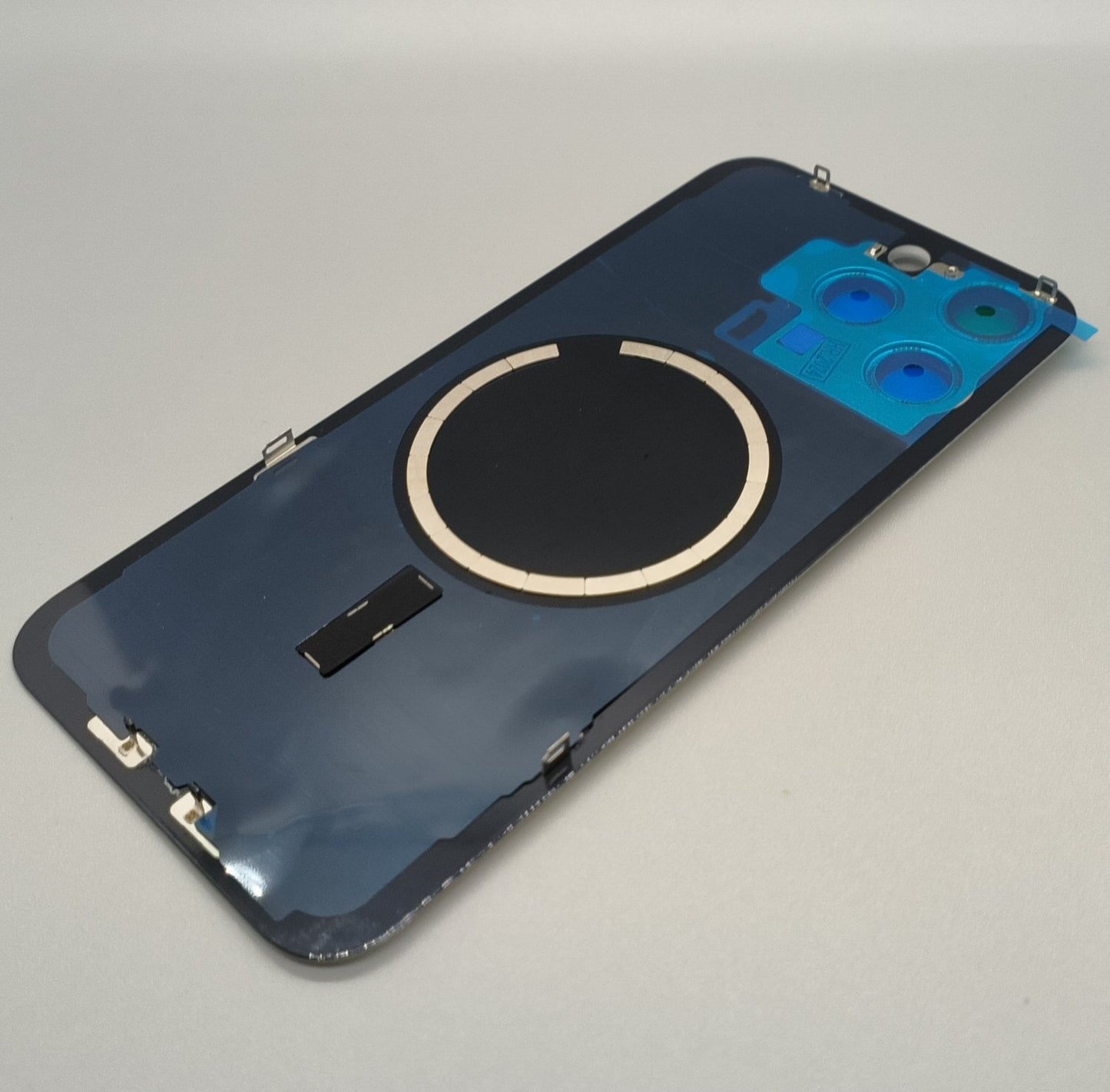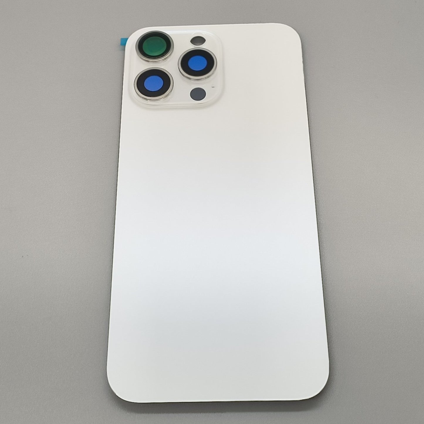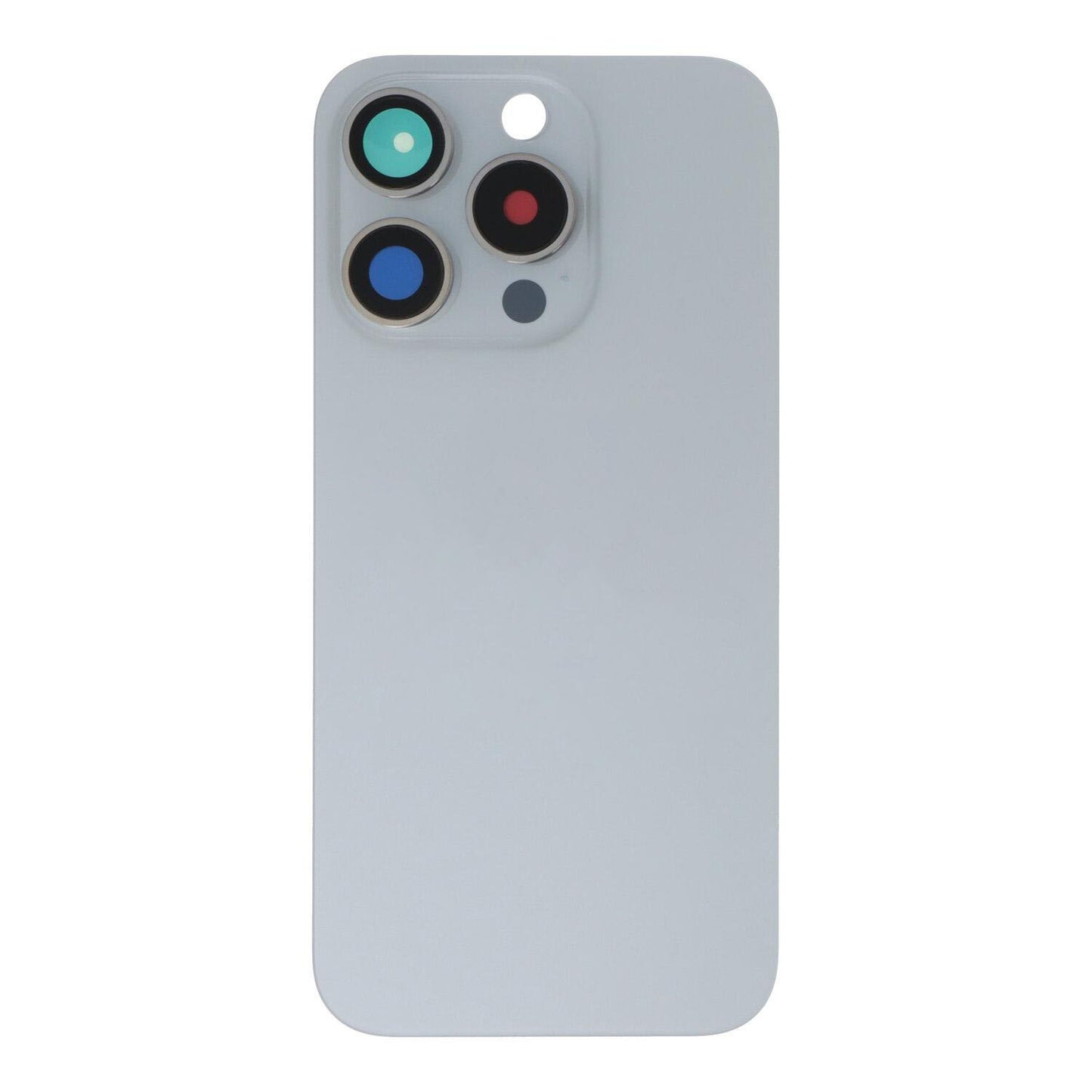 PAKETINHALT - 1 x Glasrückseite für iPhone 15 Pro Max, weißes Titan, Batteriefach, Kameralinsenblende, Magnetring + Metallplatte, schlicht ohne Logo.
