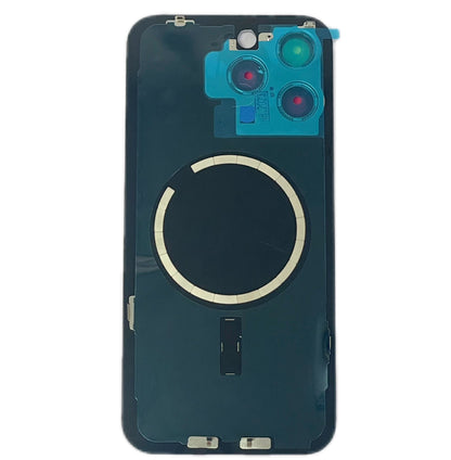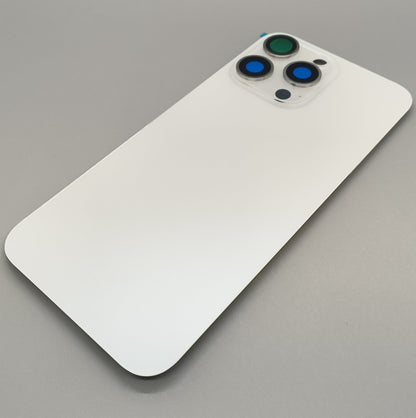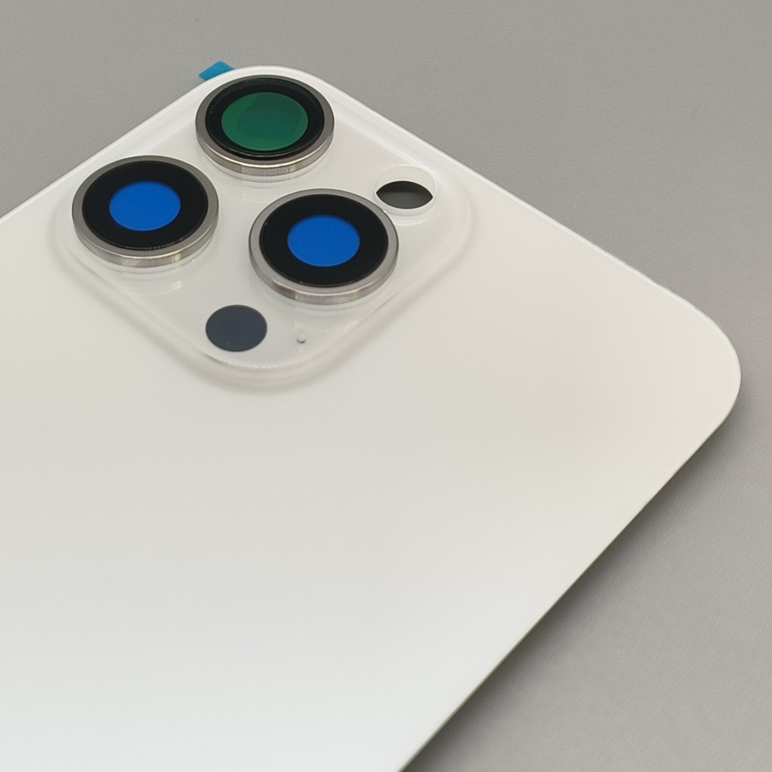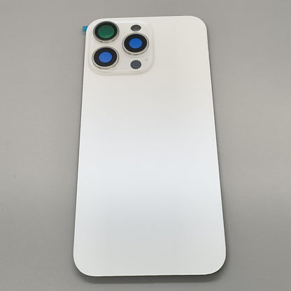 Glasrückseite für iPhone 15 Pro Max Weiß Titan Batteriefach Kameralinse Lünette Magnetring + Metallplatte Glatt Ohne Logo