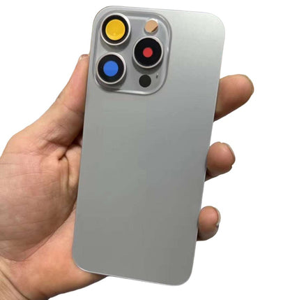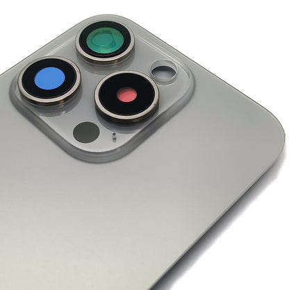 PAKETINHALT - 1 x Glasrückseite für iPhone 15 Pro aus natürlichem Titan, Batteriefachdeckel, Kameralinsenblende, Magnetring + Metallplatte, schlicht ohne Logo.