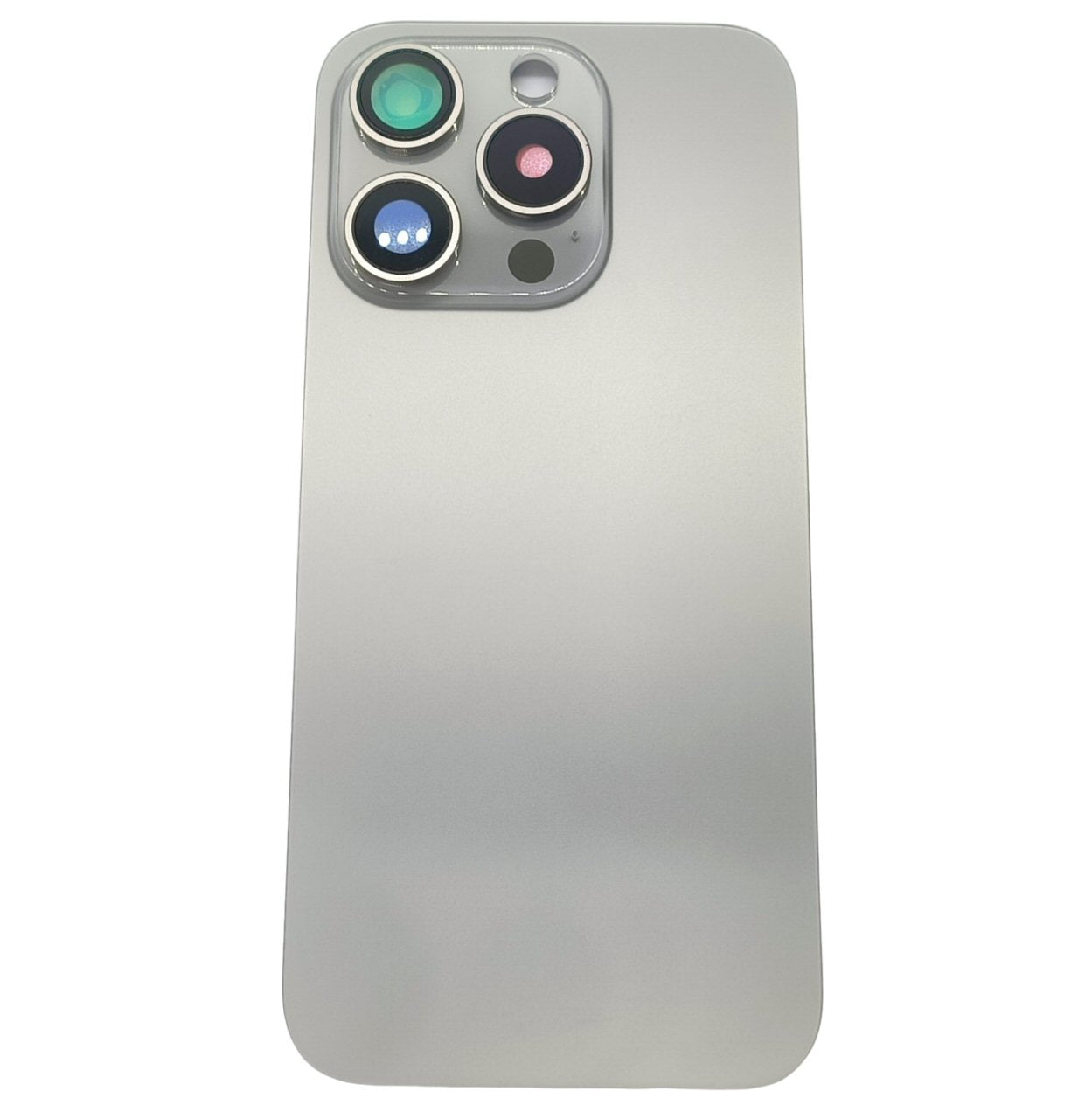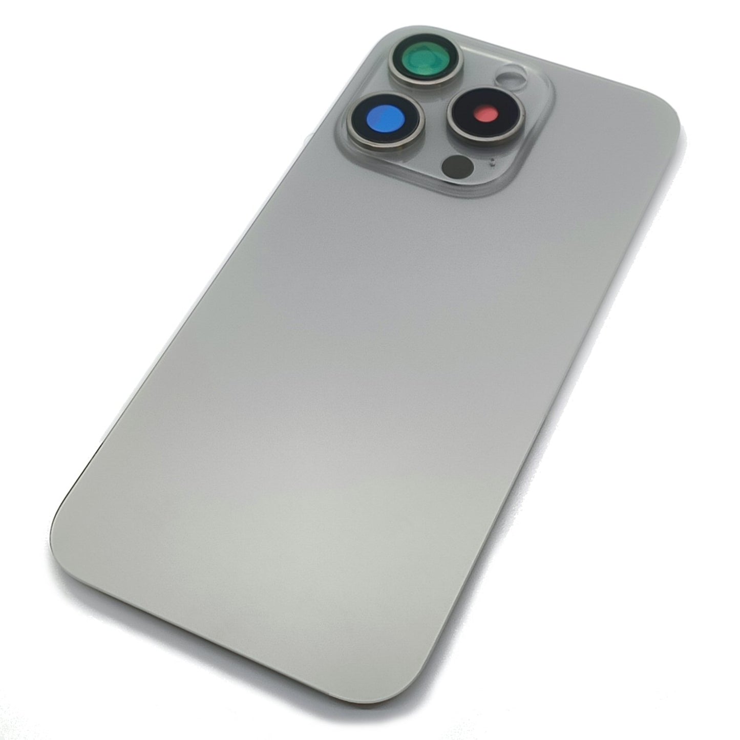 Glasrückseite für iPhone 15 Pro Natürliches Titan Batteriefach Kameralinse Lünette Magnetring + Metallplatte schlicht ohne Logo