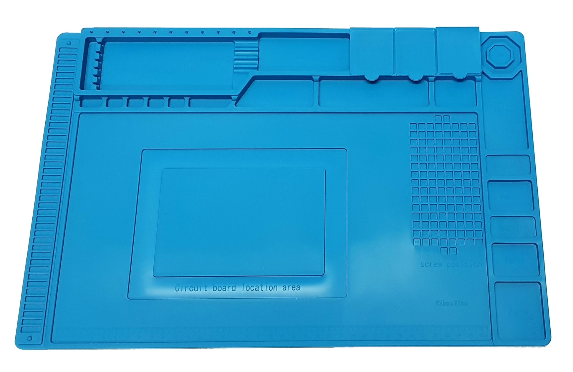 Diese flexible Arbeitsmatte aus Silikon bietet Ihnen eine sichere und kontrollierte Arbeitsfläche für alle Telefonreparaturen oder Arbeiten mit extremer Hitze, z. B. die Verwendung einer Nacharbeitsstation für Telefonreparaturen.