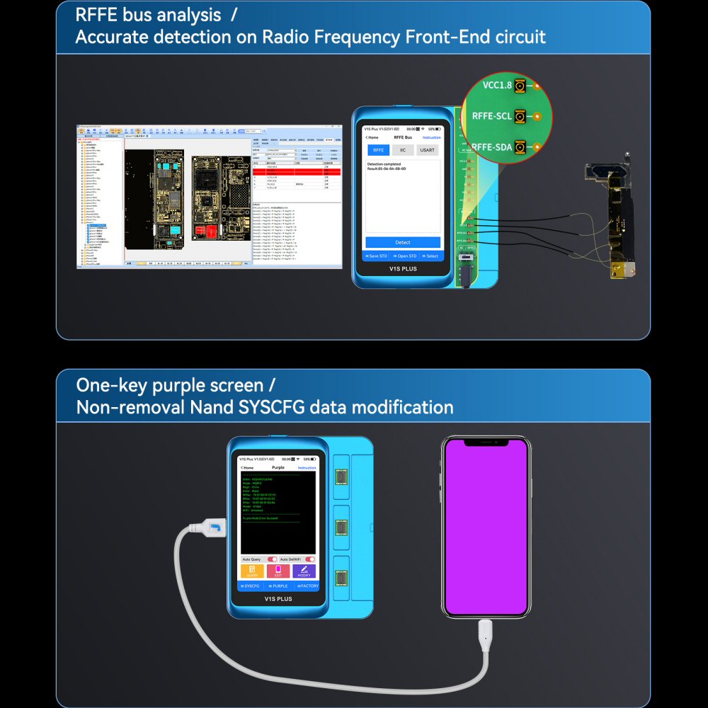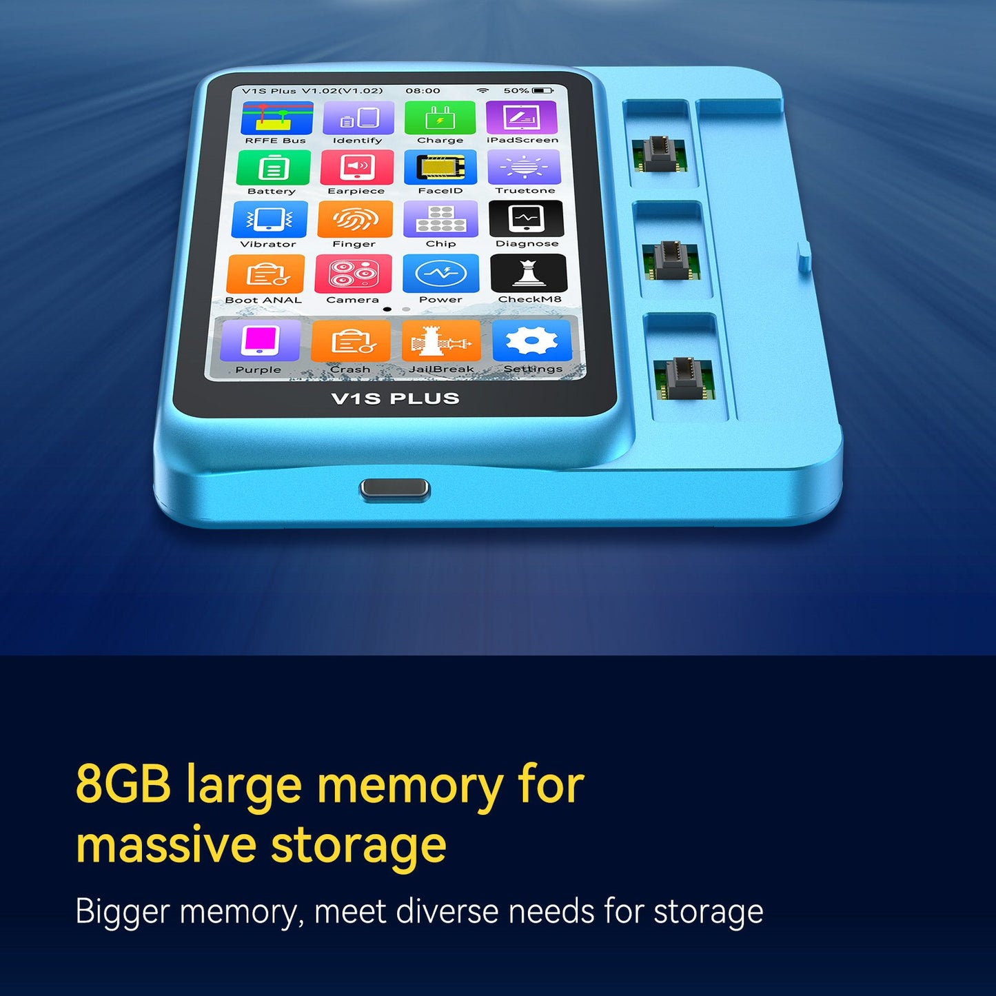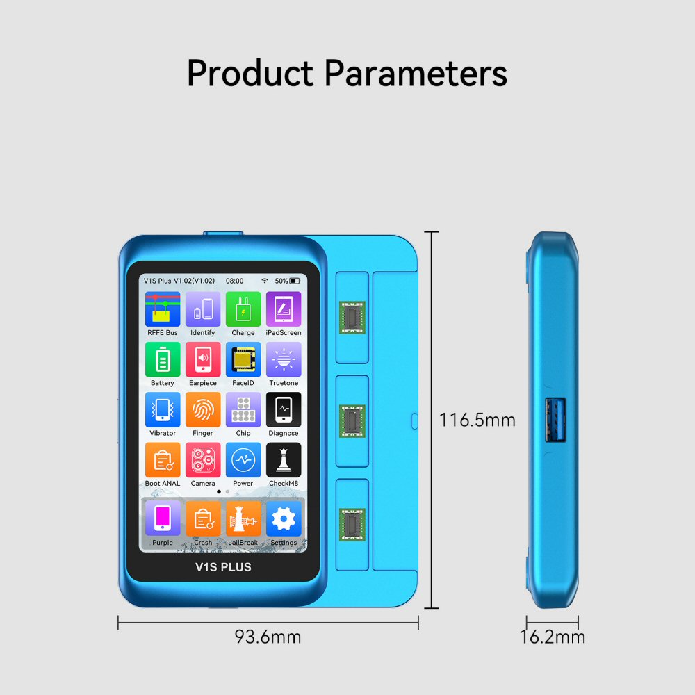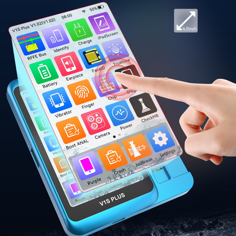Die JCID V1S Plus Master Edition ist ein hochmodernes Diagnose- und Reparaturtool auf Chipebene für professionelle Techniker, die schnelle, präzise und vielseitige Funktionen benötigen. Dank der Unterstützung für Chip-Lesen, -Schreiben und -Analyse eignet sich dieses Gerät perfekt für die True-Tone-Wiederherstellung, die Reparatur von Lichtsensoren, die Diagnose von Batteriefehlern und die SYSCFG-Datenverwaltung.