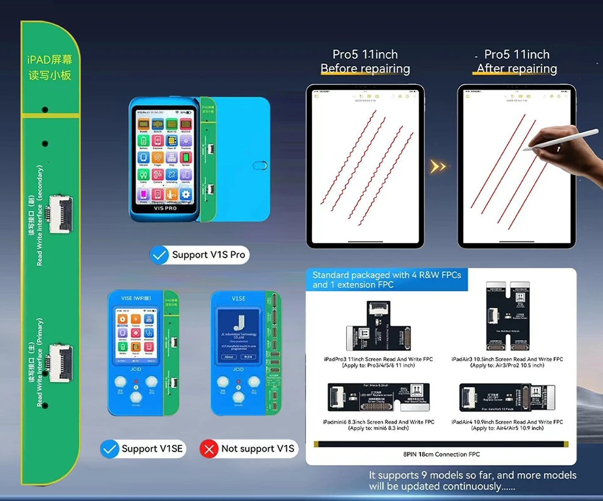 JCID V1SE Bildschirm-Lese- und Schreibadapter für iPad MtSN Wellenlinien-Reparatur