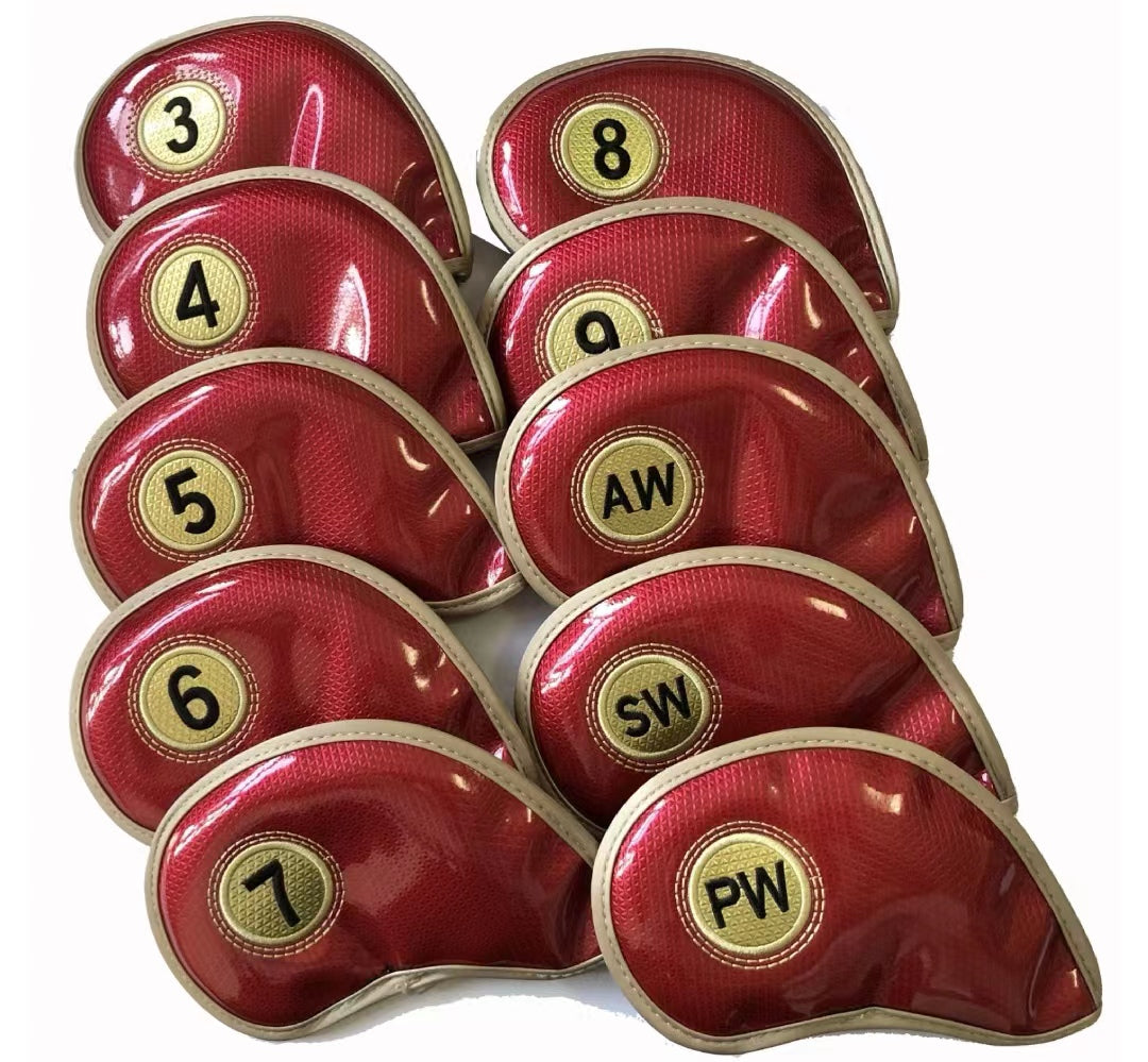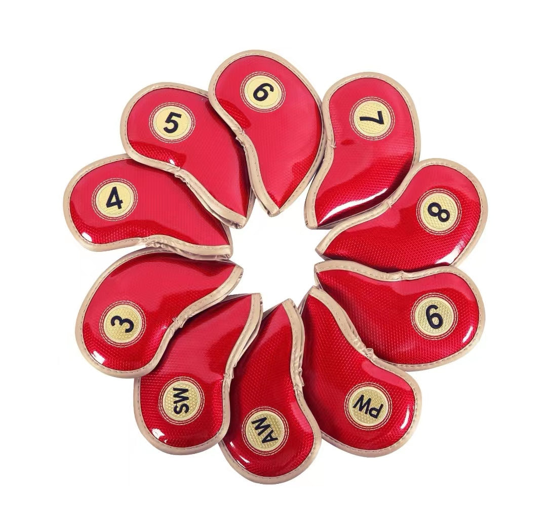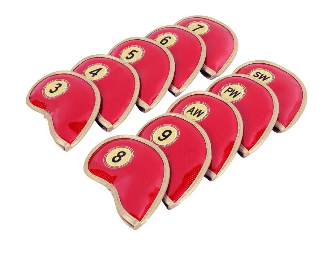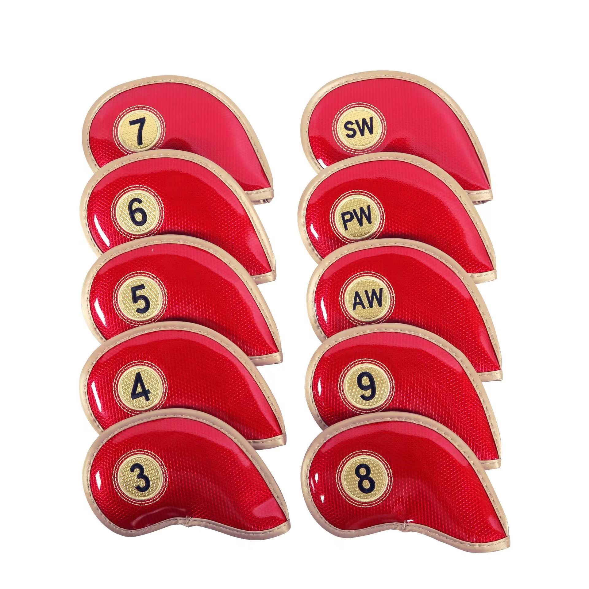 Leder Golfschlägerkopfbedeckungen Eisen Set 10 Stück Club Eisenkopfbedeckungen in Rot