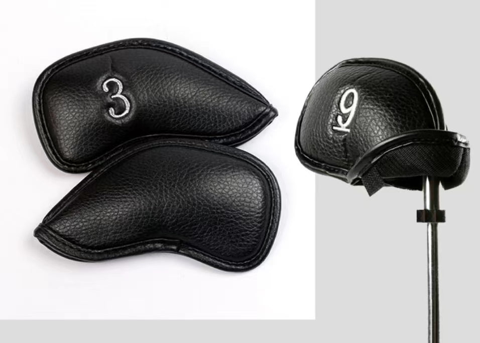 Leder Golfschlägerkopfbedeckungen Eisen Set 12 Stück Club Eisenkopfbedeckungen in Schwarz