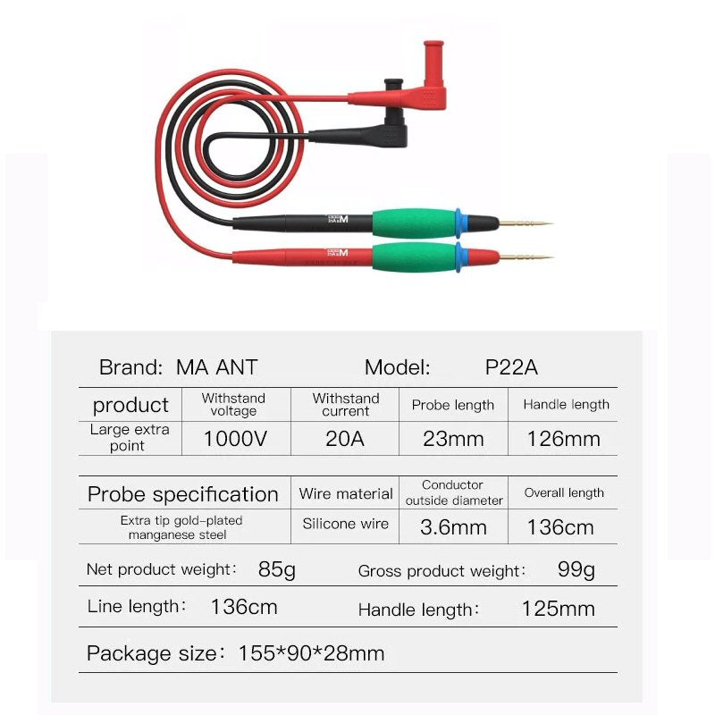 1 x MaAnt 1000 V 20 A Universal-Multimeter-Messleitungen mit Nadelspitze, Messsonden