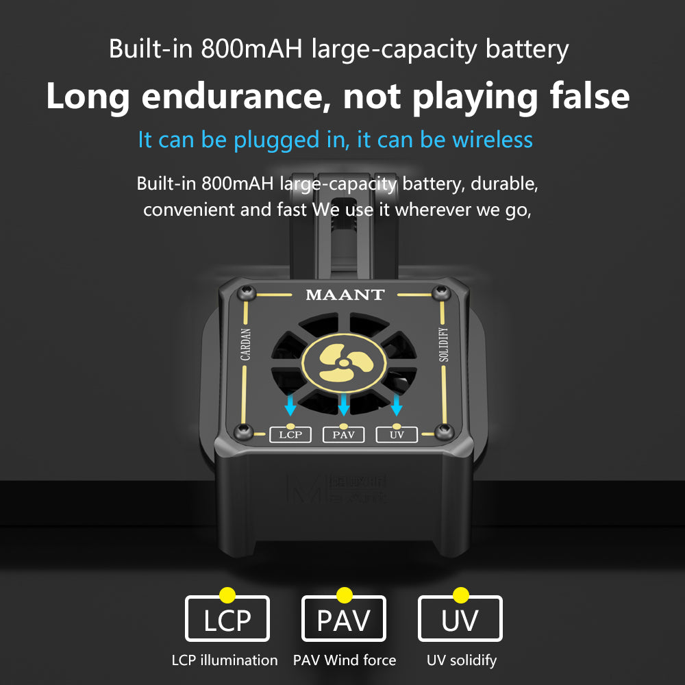 MaAnt LCP PAV UV-Lampe: 3-Sekunden-UV-Härtung, PAV-Licht, umkehrbarer Lüfter für Kühlung oder Dämpfe und kabellose Nutzung mit 800-mAh-Akku. Perfekt für die Reparatur von Elektronik!