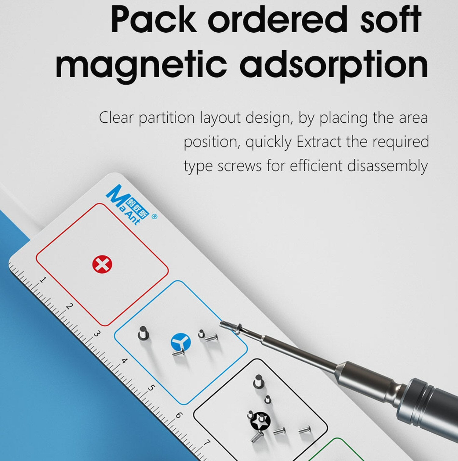 Wir präsentieren den MaAnt Magnetic Screw Mat Organizer – die ultimative Lösung für die Handhabung kleiner Schrauben bei Telefonreparaturen und darüber hinaus. Halten Sie Ihren Arbeitsplatz sauber und aufgeräumt, damit Sie mühelos auf die Schrauben zugreifen können – mit unserem innovativen Design.