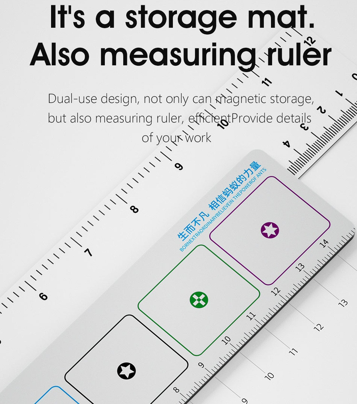 Vielseitiges Design: Unsere Matte ist nicht nur ein Schrauben-Organizer, sondern dient auch als Aufbewahrungslösung und Messlineal und bietet Vielseitigkeit und Funktionalität in einem kompakten Design.