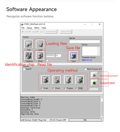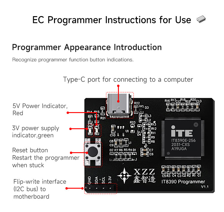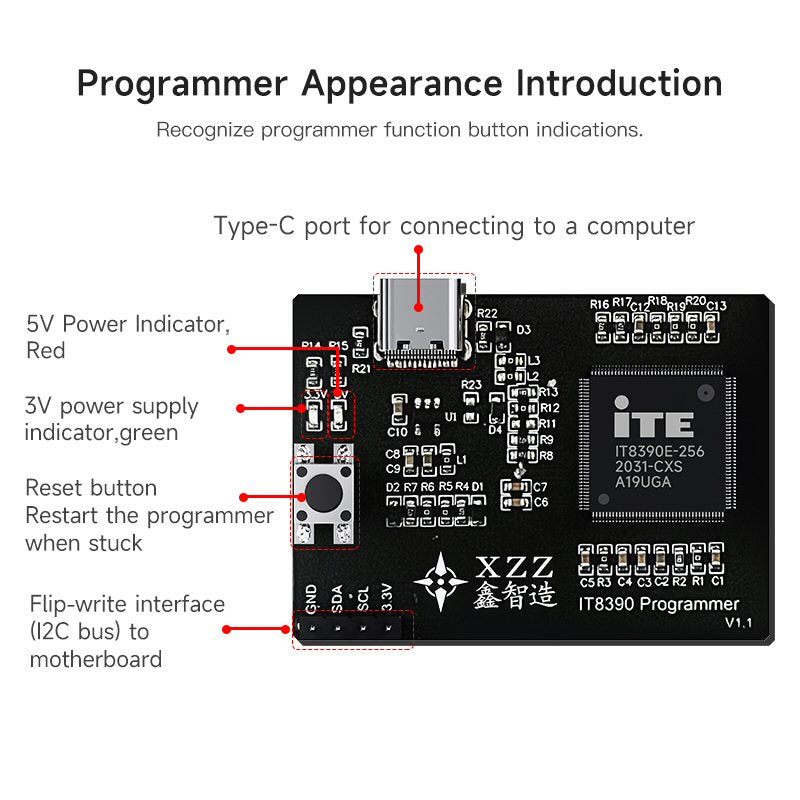 Effiziente Chip-Programmierung: Der XZZ IT8390-Programmierer ist für die effiziente und problemlose Programmierung von Chips der Serien iTE EC ITE85XX und ITE83XX auf Laptops und Notebooks konzipiert, sodass keine Demontage erforderlich ist.