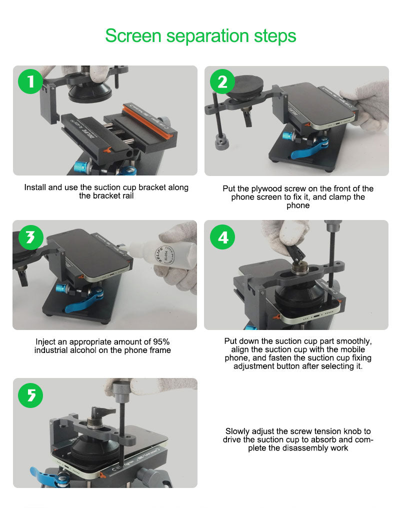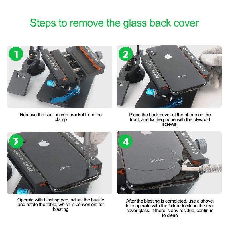 Relife RL-601s Plus 360-Grad-Halter zum Entfernen des iPhone-Rückglases mit Saugnapf