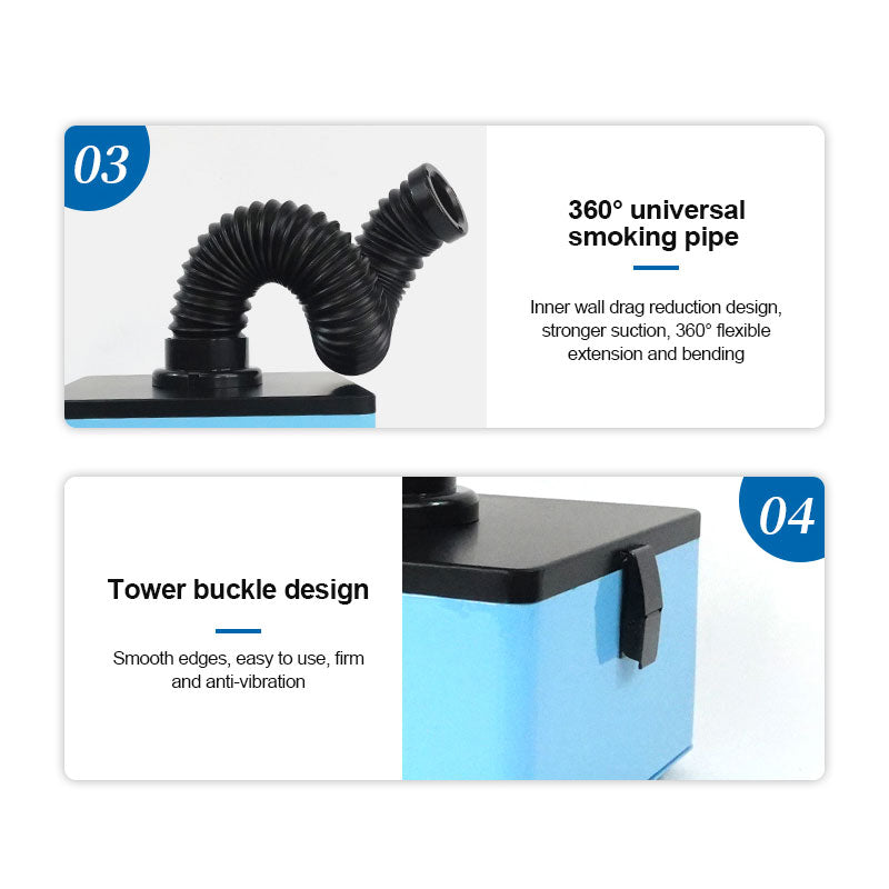 SICHER – Es filtert und reinigt schädliche Dämpfe vom Techniker weg, wenn in jeder Umgebung gelötet oder nachgearbeitet wird.