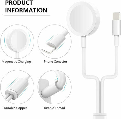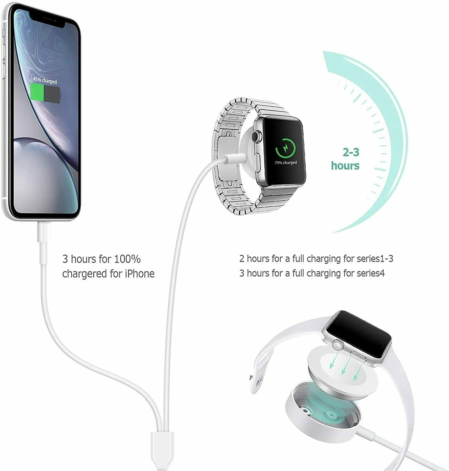 Kabelloses Ladegerät für Apple Watch iPhone, magnetisch, 2 in 1, 1 m lang