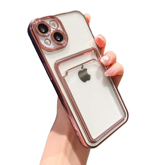 Coque pour iPhone 14Pro 15Pro Clear View Porte-cartes avec bord stylisé Rose Rose