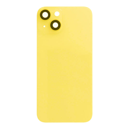 Coque arrière en verre pour iPhone 14 Jaune Couvercle de batterie Objectif de caméra Lunette Anneau de magnétisme + Plaque métallique unie sans logo