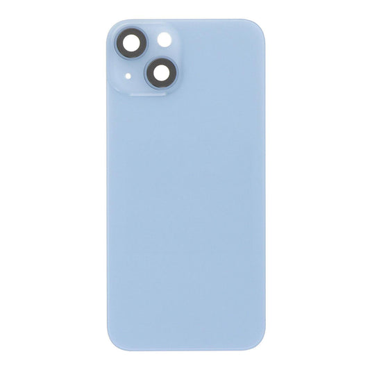 Coque arrière en verre pour iPhone 14 Bleu Couvercle de batterie Objectif de caméra Lunette Anneau de magnétisme + Plaque métallique unie sans logo