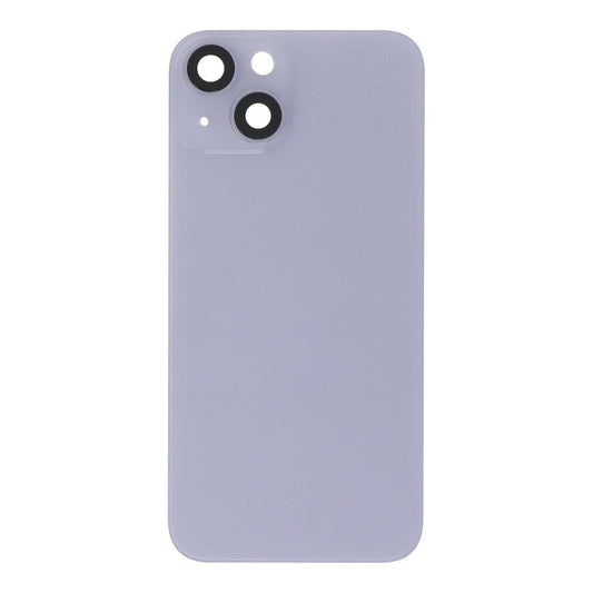 Coque arrière en verre pour iPhone 14, couvercle de batterie violet, objectif de caméra, lunette, anneau magnétique + plaque métallique unie sans logo