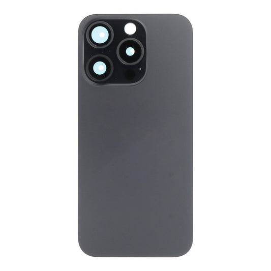 Coque arrière en verre pour iPhone 15 Pro Max, porte de batterie en titane noir, objectif de caméra, lunette, anneau magnétique + plaque métallique unie sans logo