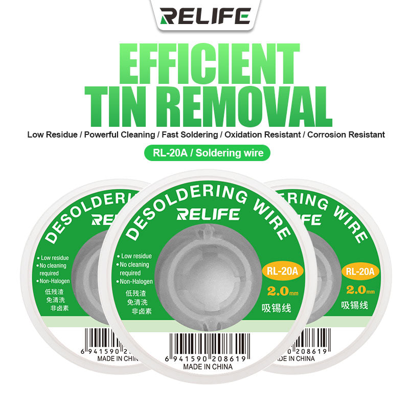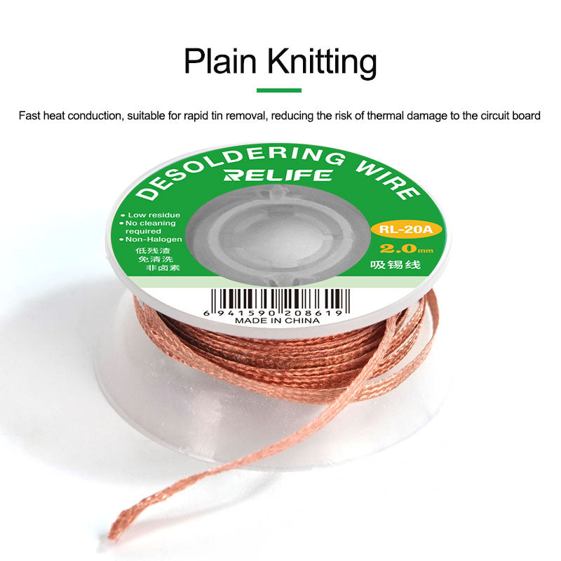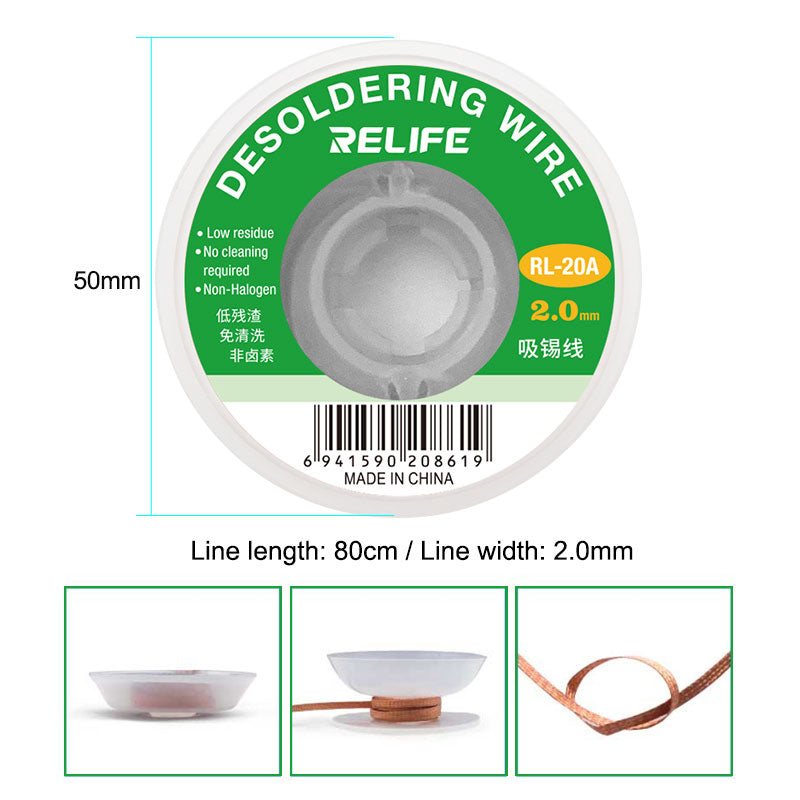 CONTENU DU COLIS - 1 x fil à dessouder Relife RL-20A 2,0 mm.