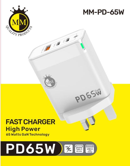 Chargeur rapide double USB-C PD USB-A QC3.0 65 W MM avec prise à technologie GaN pour iPad MacBook Tablet