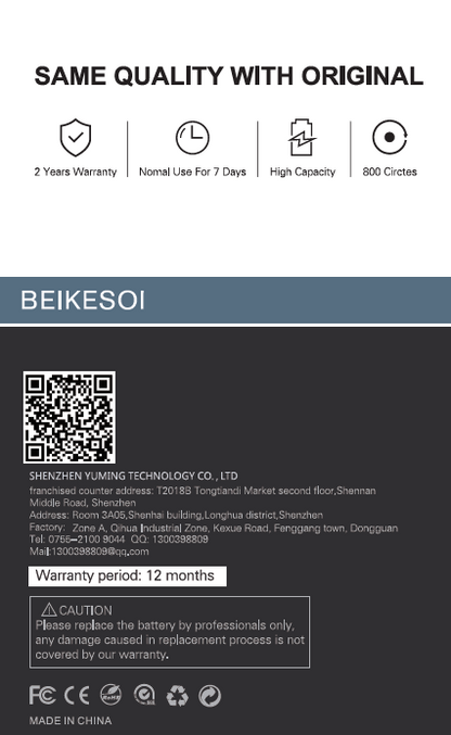 Les batteries Beikesoi utilisent la dernière technologie de puce TI pour obtenir les meilleures performances de votre téléphone et de vos batteries.