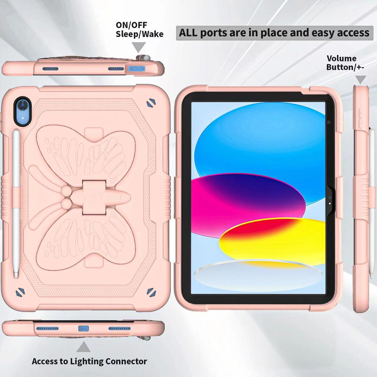 1 x étui papillon pour iPad Air4/Air5/iPad Pro 11 11 pouces multicolore rose arc-en-ciel avec sangle
