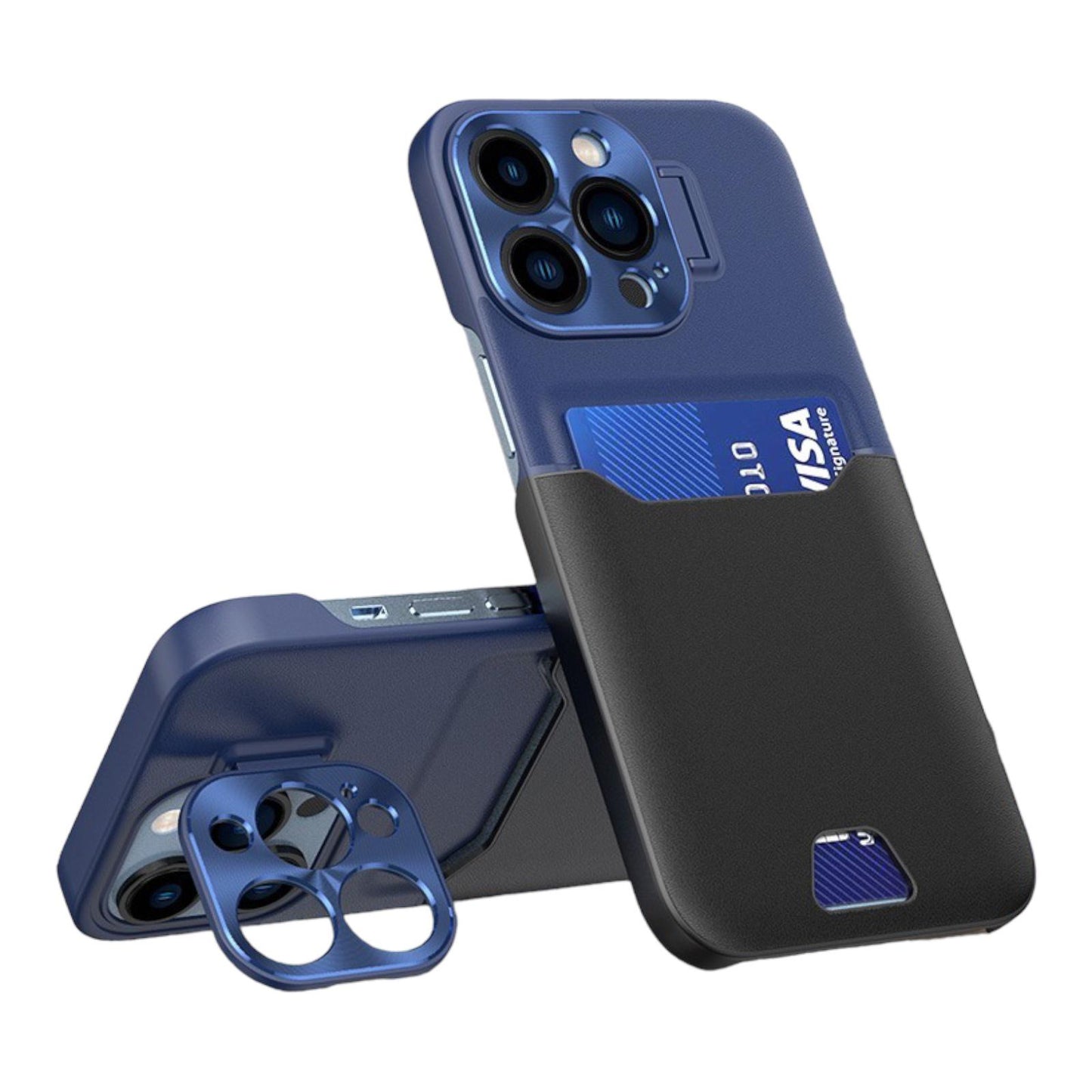 Étui pour iPhone 14 Pro Max en noir et bleu avec porte-cartes et protecteur d'objectif