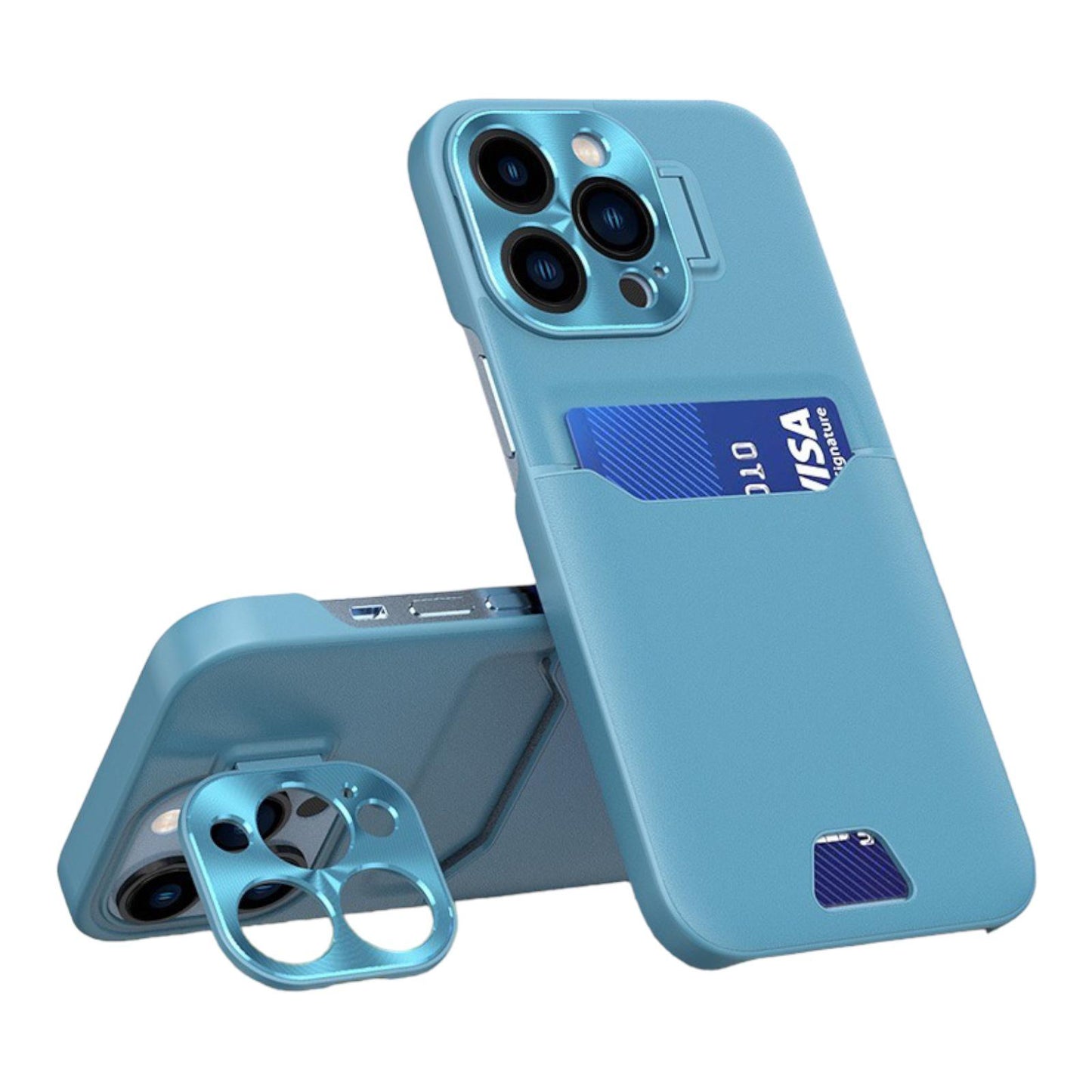 Étui pour iPhone 14 Pro Max en bleu lac avec porte-cartes, protecteur d'objectif et support