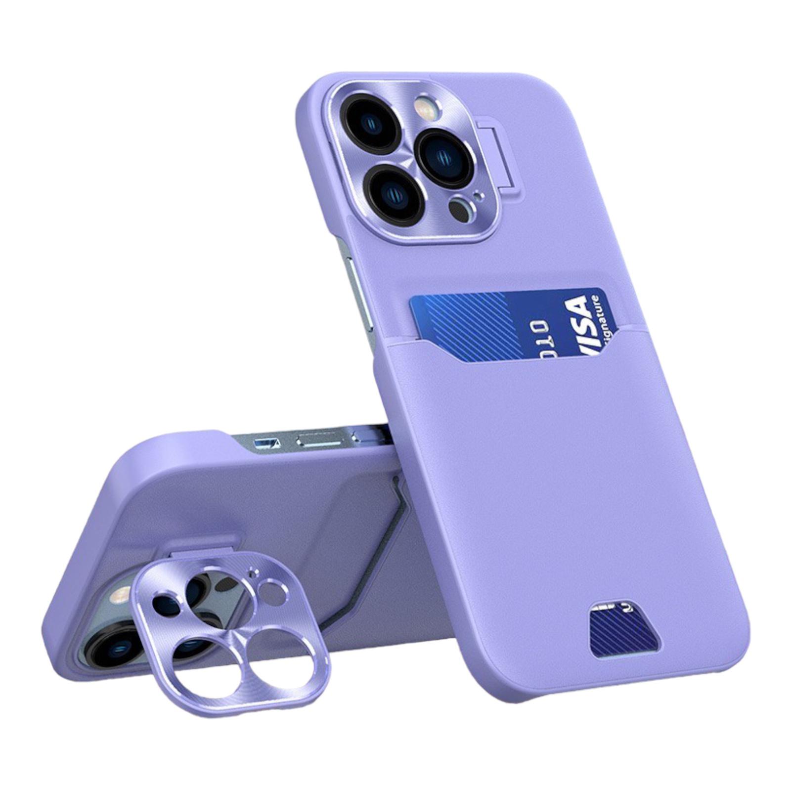 Étui pour iPhone 14 Pro Max en violet avec porte-cartes et support de protection d'objectif