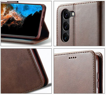 Étui portefeuille à rabat en cuir PU de luxe pour Samsung S23 Noir