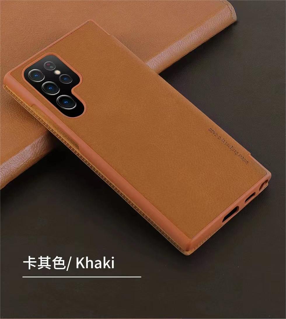 Coque pour Samsung S23 Ultra G en cuir PU à rabat en kaki