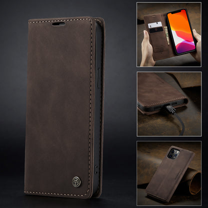 Étui à rabat pour iPhone 13 Pro Portefeuille en cuir marron fait main avec rabat magnétique