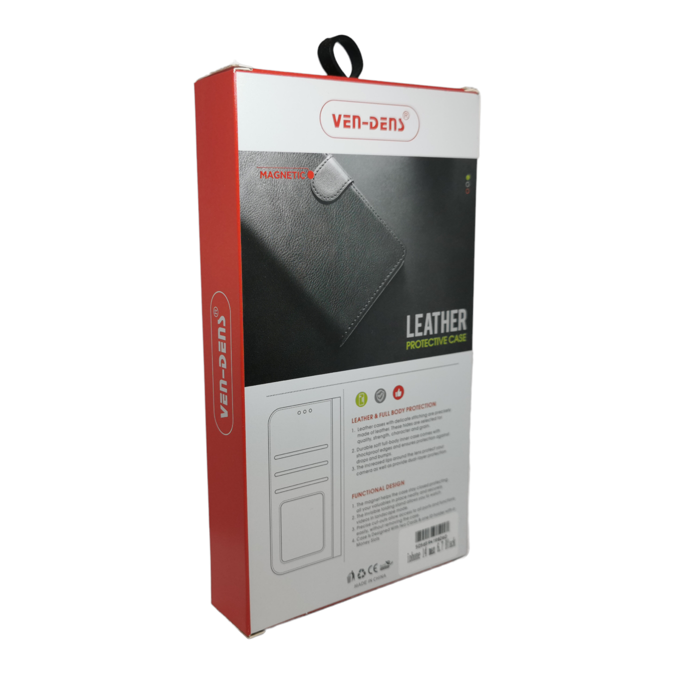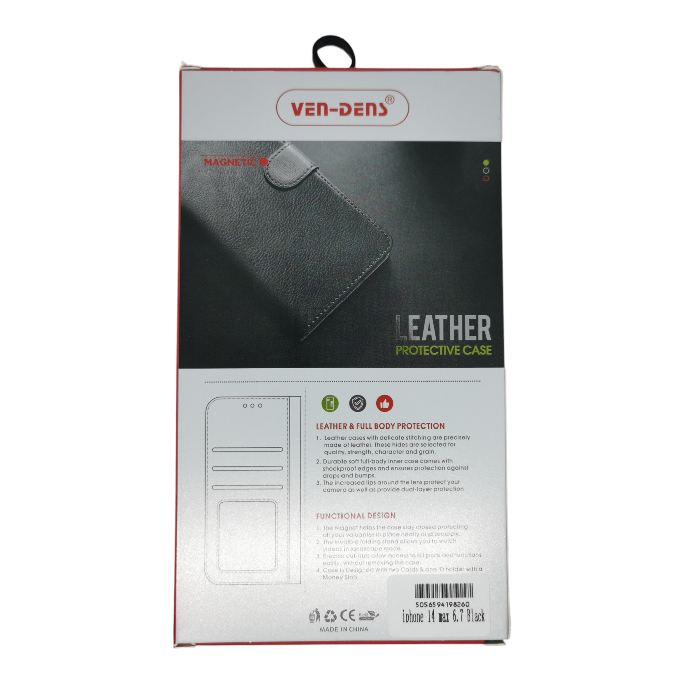 Étui à rabat pour iPhone 14pm 15pm Portefeuille en cuir PU de luxe Noir