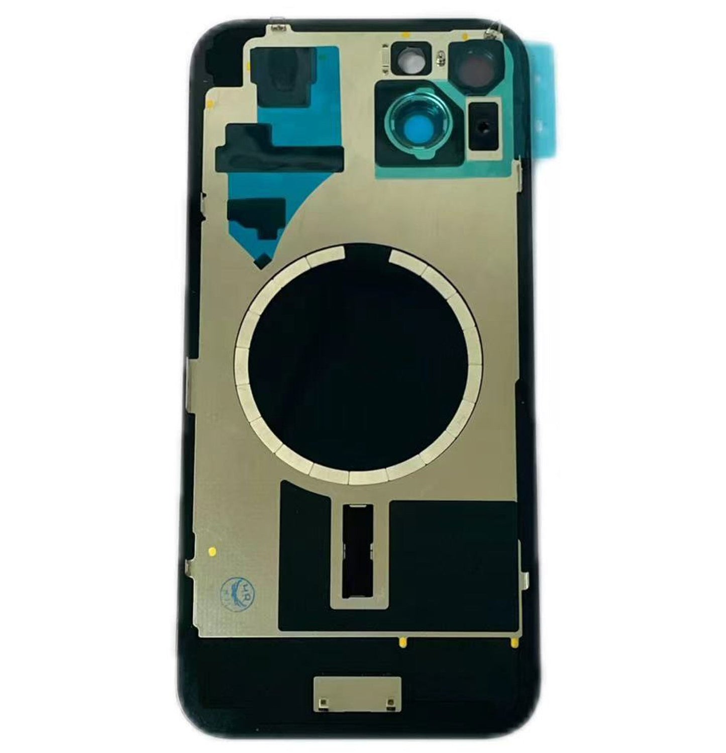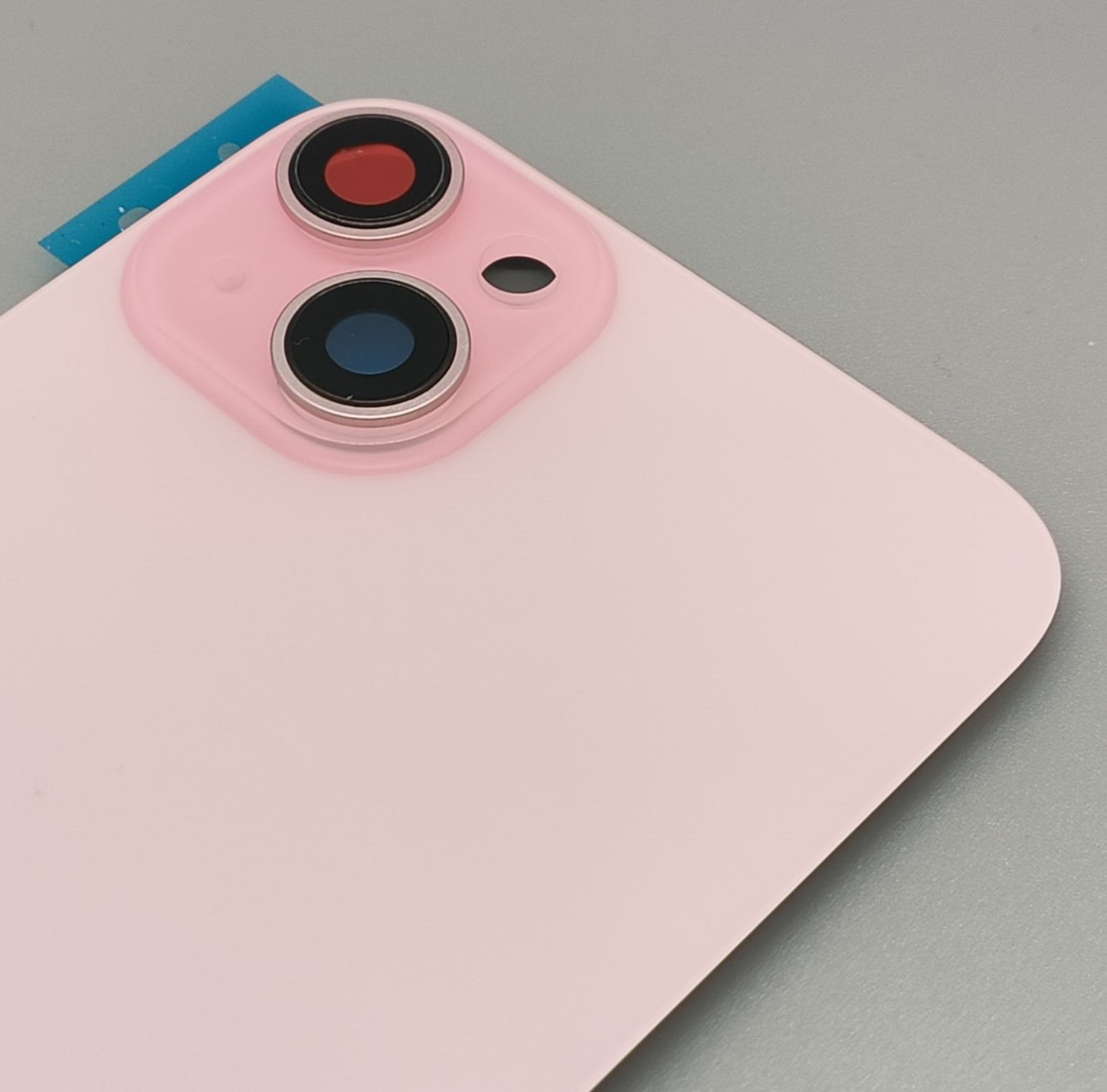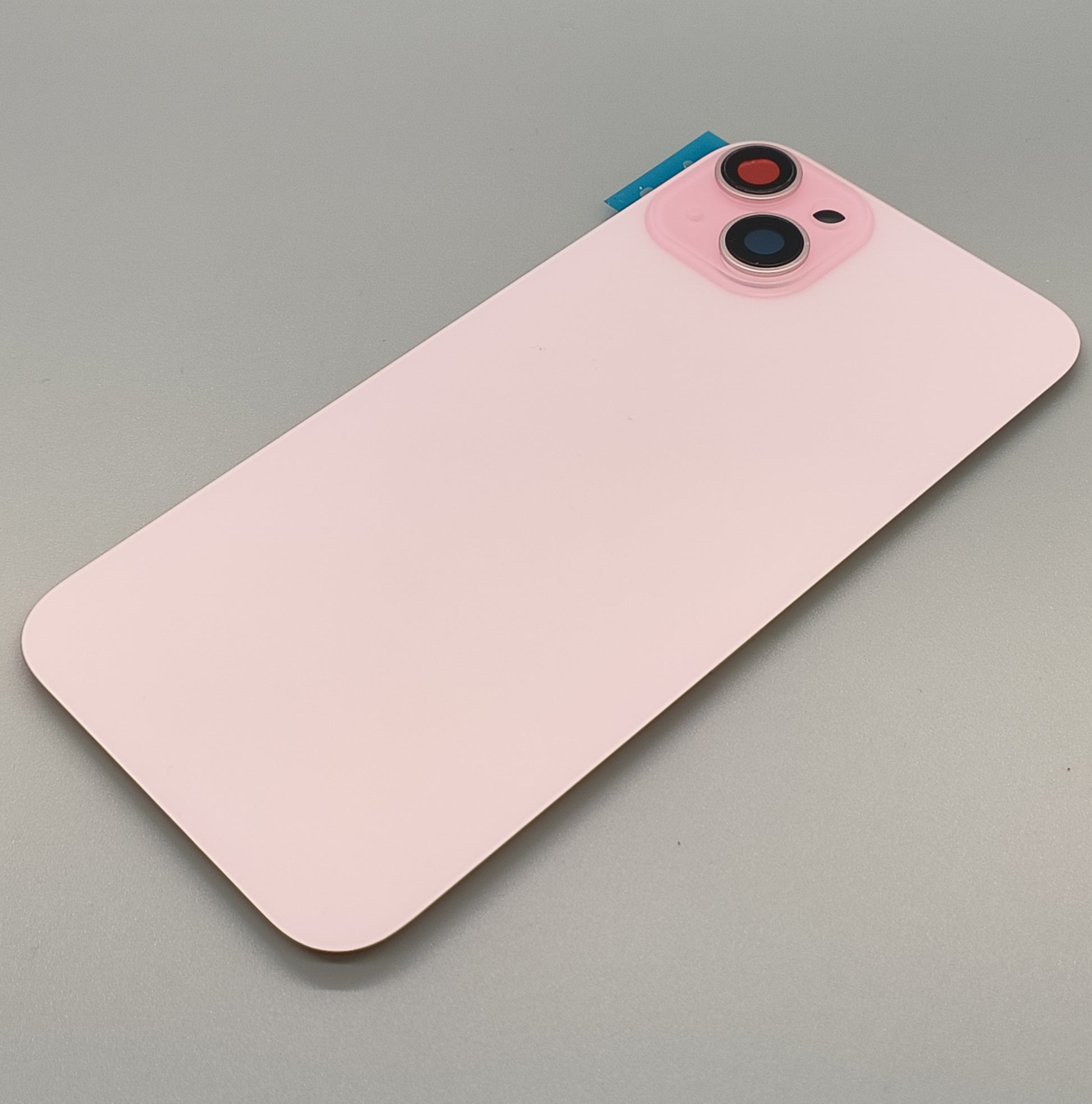 CONTENU DE L'EMBALLAGE - 1 x dos en verre pour iPhone 15 Plus rose porte de batterie objectif de caméra lunette anneau de magnétisme + plaque métallique unie sans logo.