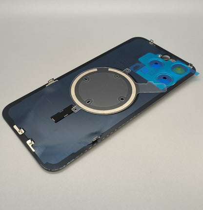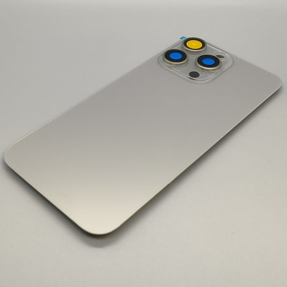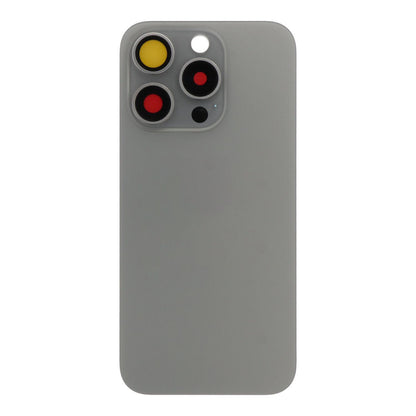 Coque arrière en verre pour iPhone 15 Pro Max, porte de batterie en titane naturel, objectif de caméra, lunette, anneau magnétique + plaque métallique unie sans logo