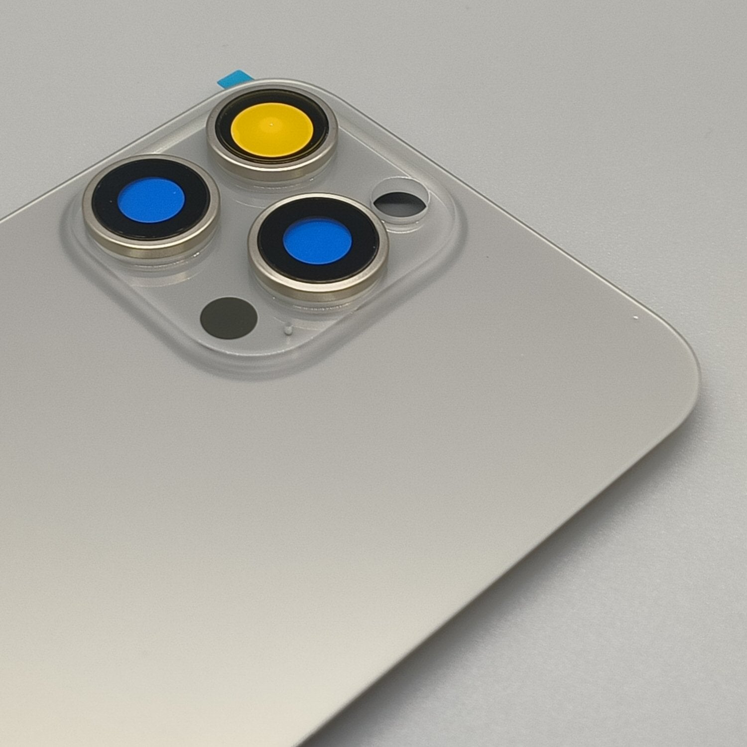 CONTENU DE L'EMBALLAGE - 1 x dos en verre pour iPhone 15 Pro Max, porte de batterie en titane naturel, lunette d'objectif d'appareil photo, anneau de magnétisme + plaque métallique unie sans logo.