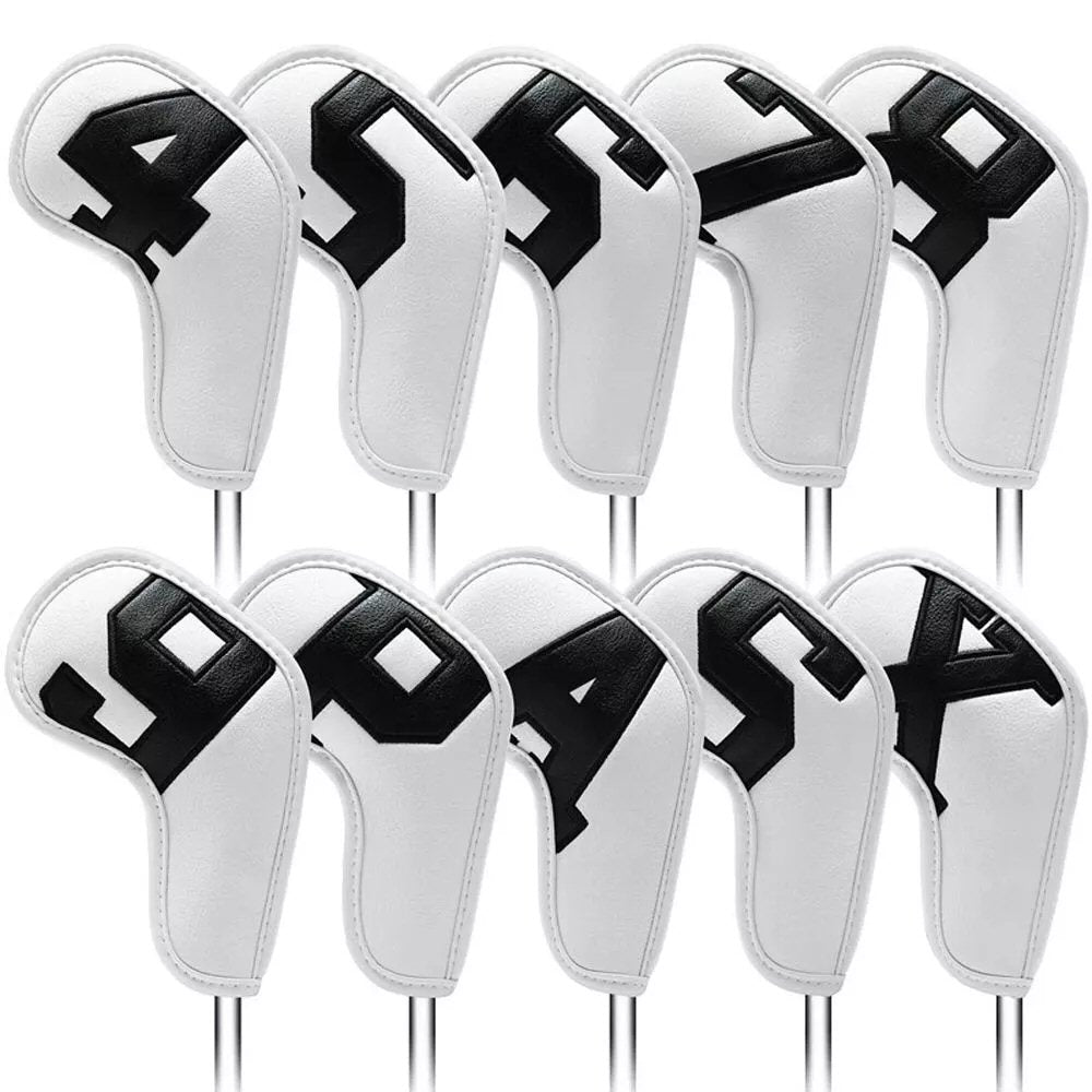 Lot de 10 couvre-têtes de clubs de golf et fers Blanc avec numéros noirs