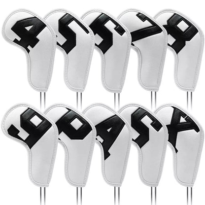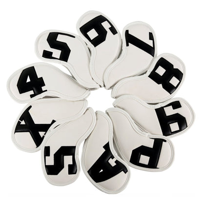 1 x Ensemble de couvre-fers de club de golf 10 pièces Couvre-fers blancs avec numéros noirs