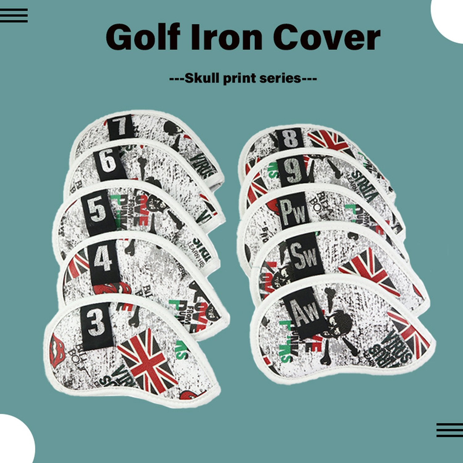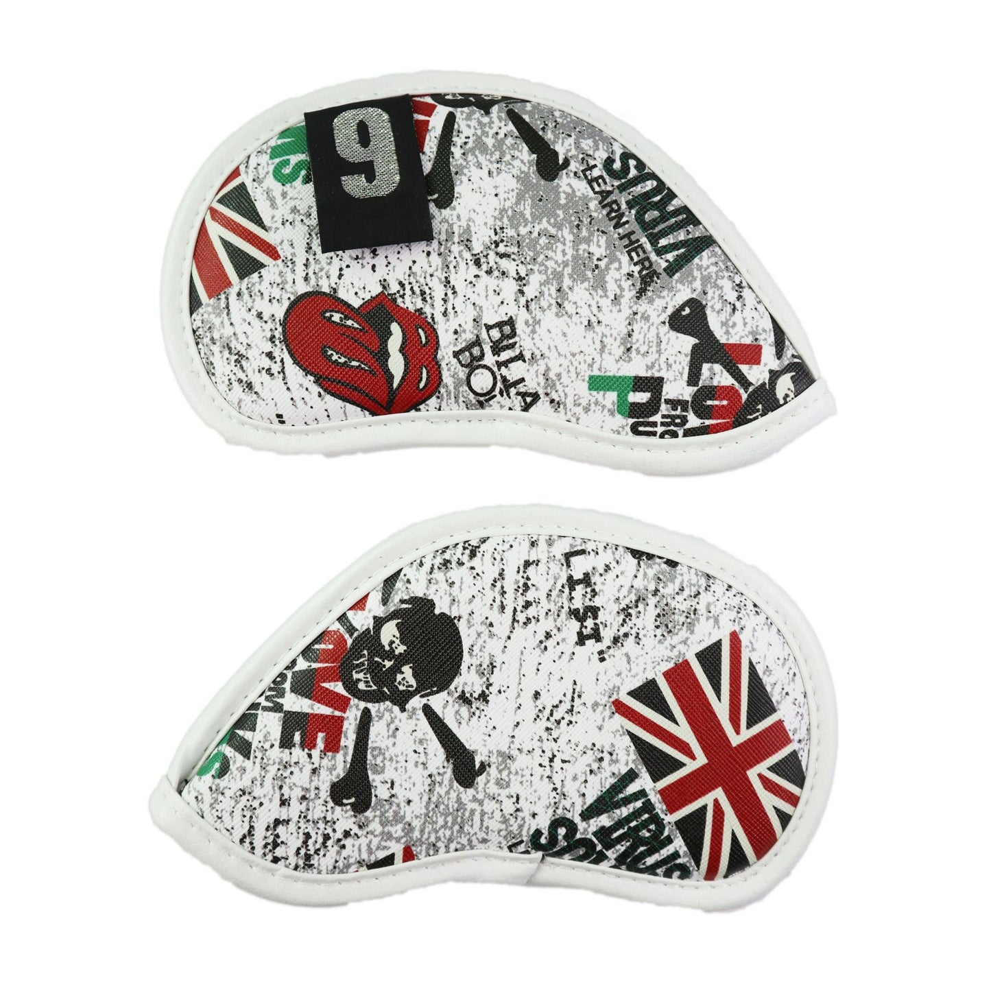 1 x couvre-tête de club de golf en fer, lot de 10 pièces, couvre-tête protecteur avec drapeau britannique et tête de mort