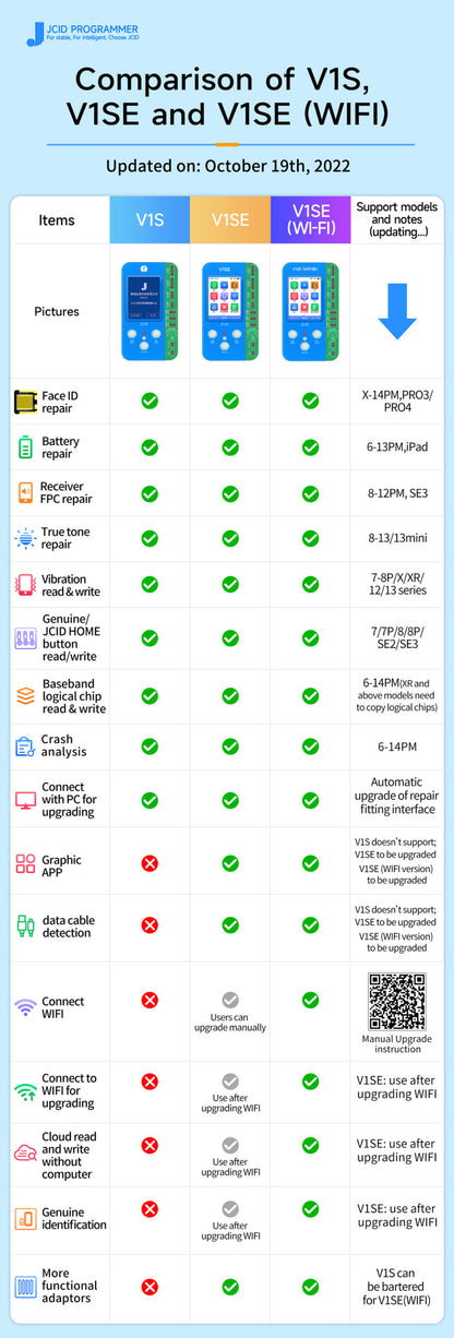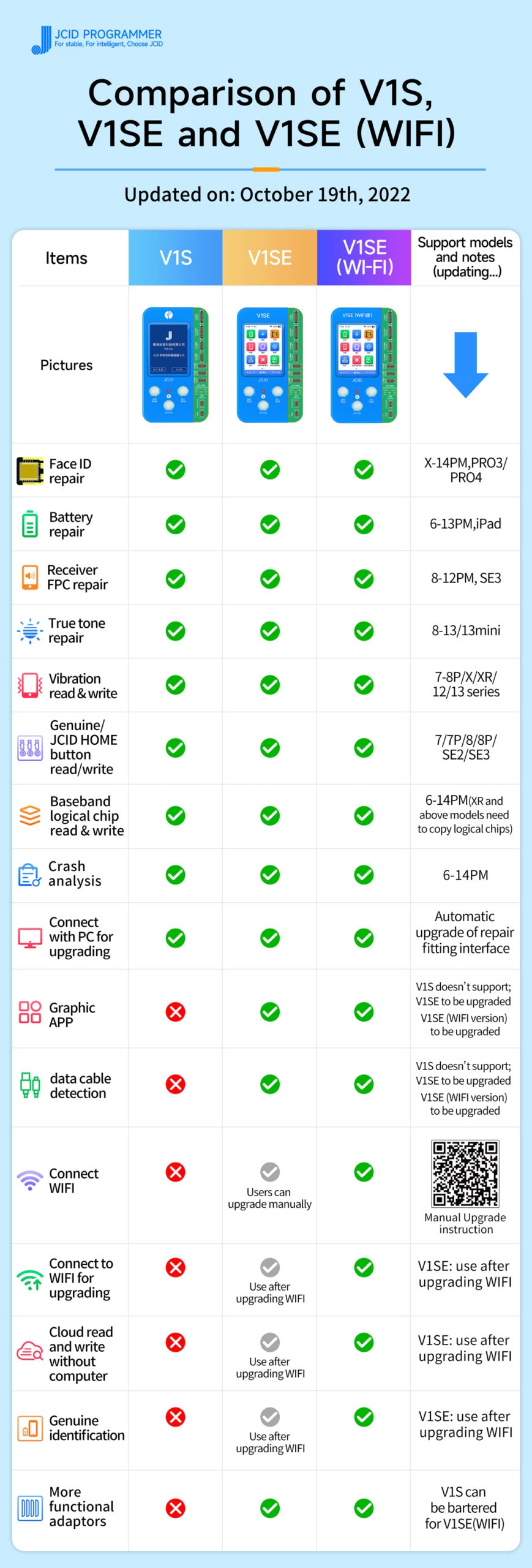 Investir dans le programmateur de réparation et d'écriture de pièces de téléphone JC ID V1SE Wi-Fi Version avec 15 x PCB est un investissement dans le succès de votre entreprise.