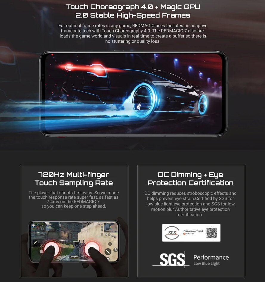ÉCRAN - Le RED MAGIC 7 est équipé d'un écran AMOLED de 6,8 pouces pour vous offrir non seulement une expérience de jeu mobile fluide, mais également l'expérience la plus claire et la plus nette visuellement.