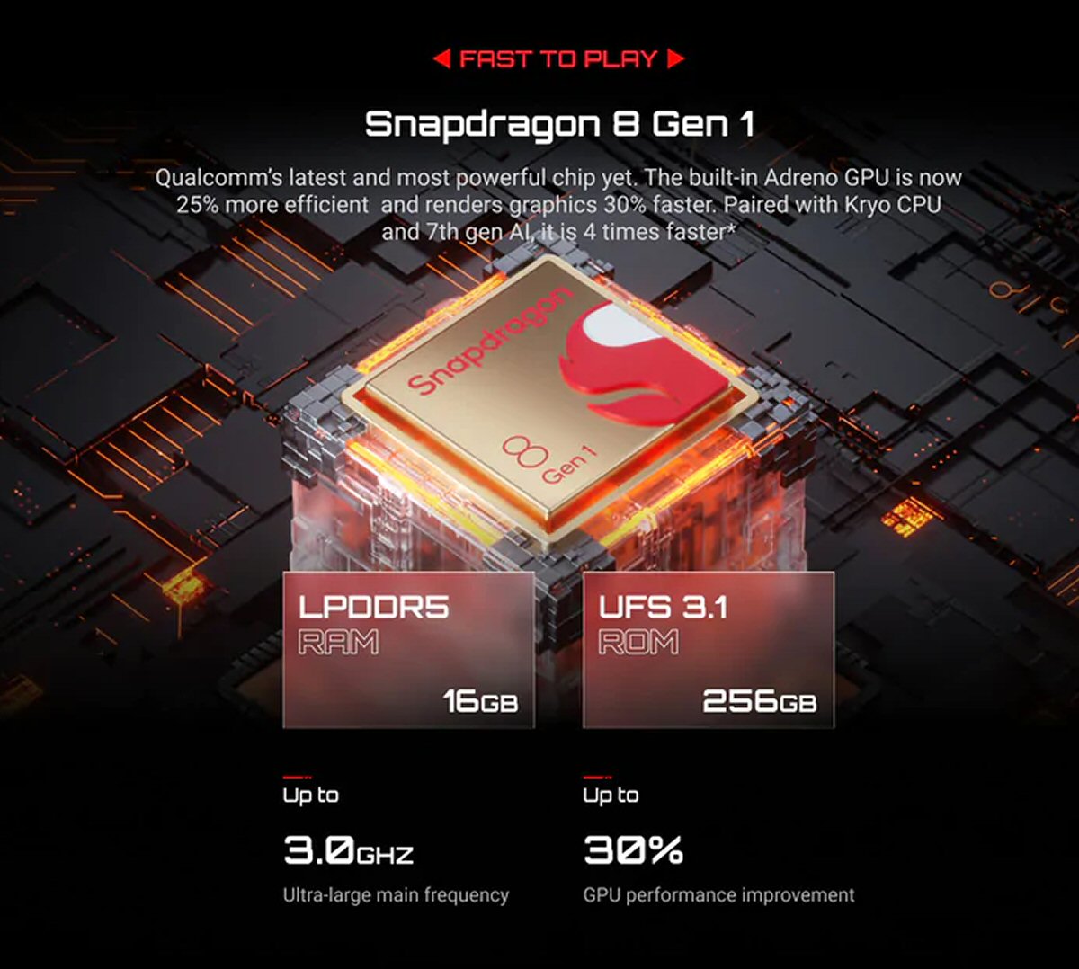 - Chipset : Qualcomm SM8450 Snapdragon 8 Gen 1